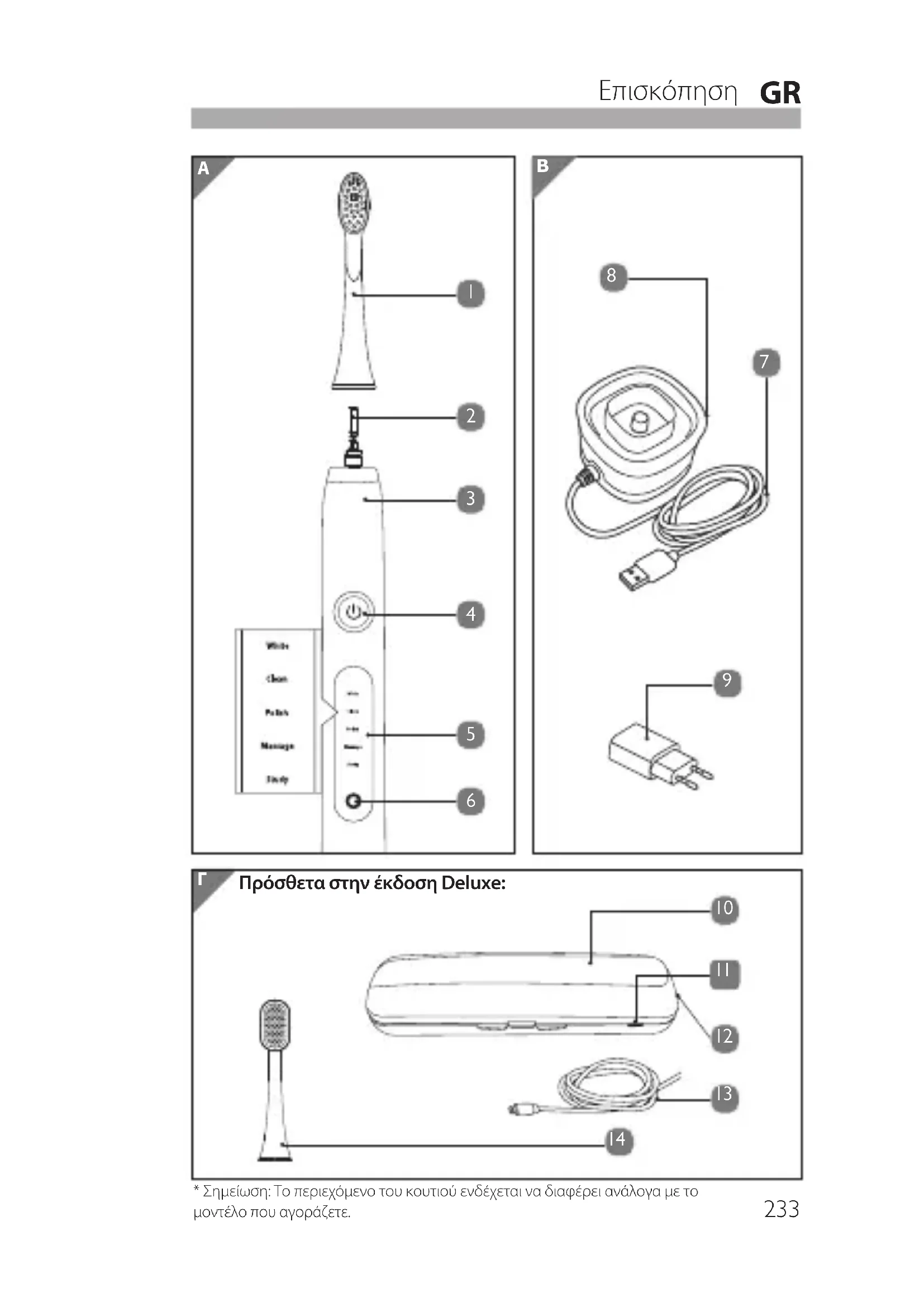 * Σημειωη: To περιεχόμενο του κουτιου ευδέχεταιν δίαφέρει ανάλογα μετο μοντέλο που αγοράζετε.
