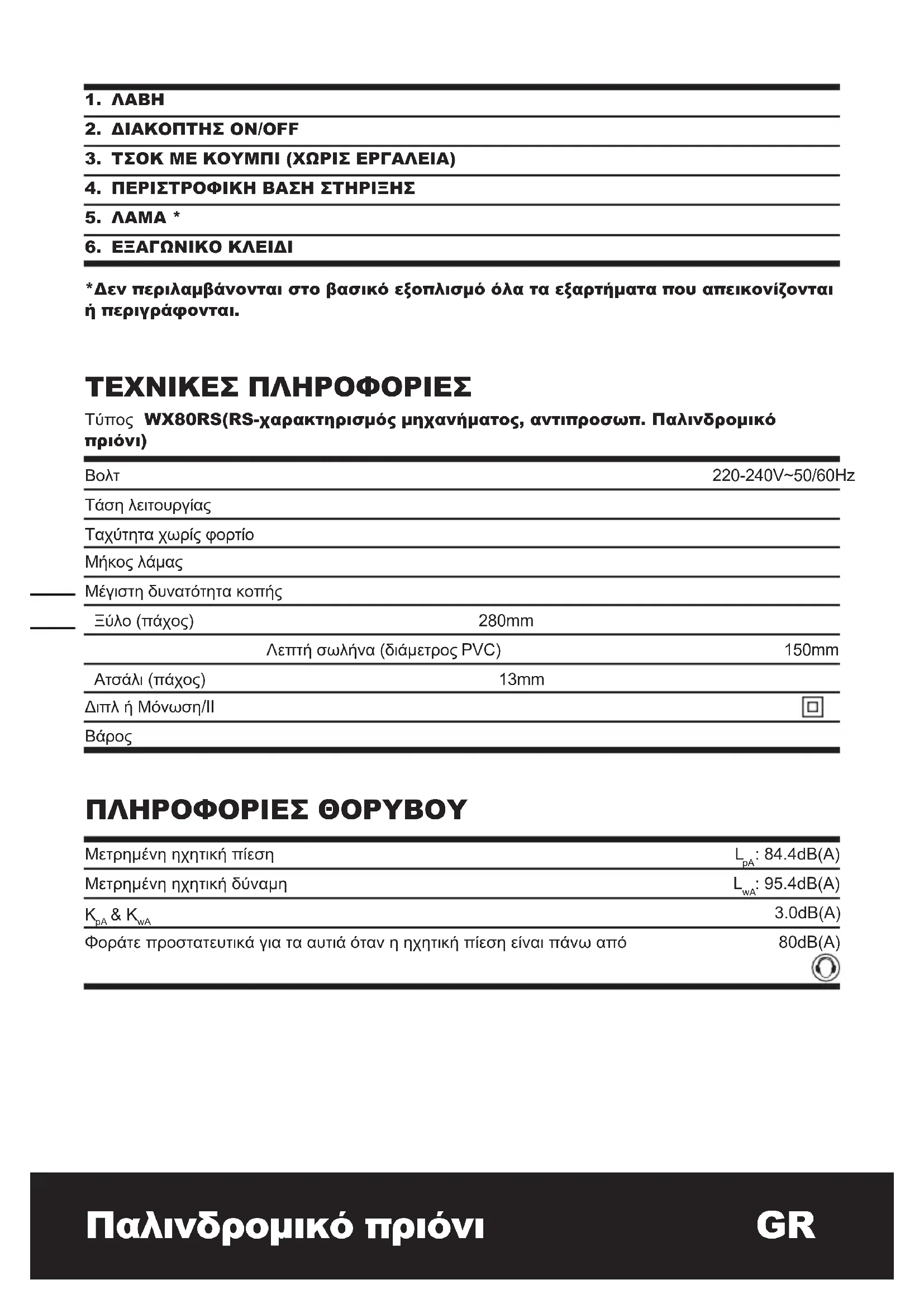ΕΓΧΕΙΡΊΔΙΟ ΧΡΉΣΗΣ WX80RS WORX