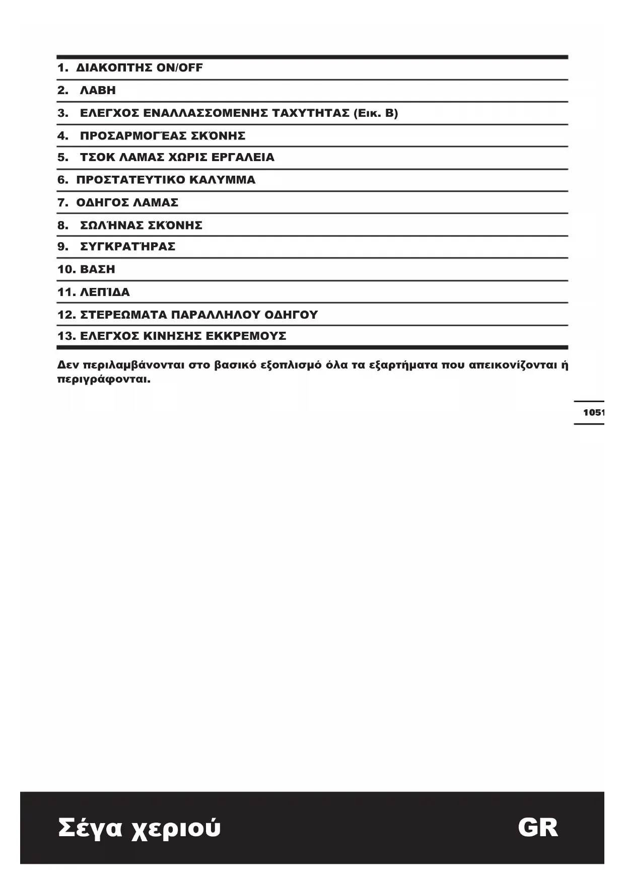Δεν περιλαμβάνονται στο βασικό εξοπλισμό όλα τα εξαρτήματα που απεικονίζονται ή περιγράφονται. Σέγα χεριού GRΣέγα χεριού GR