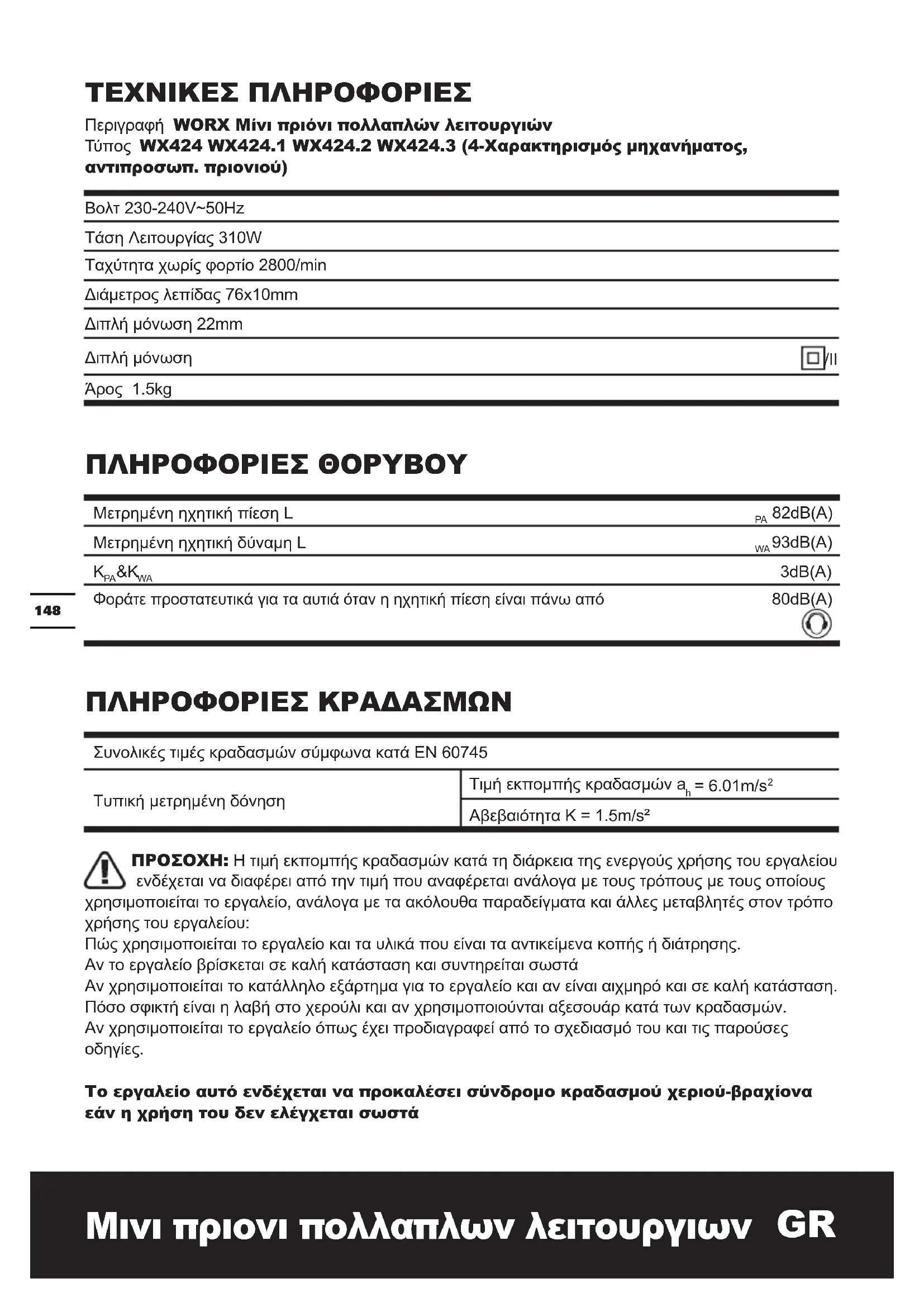 Κατεβάστε τις οδηγίες για το Πριόνι σε μορφή PDF δωρεάν! Βρείτε το εγχειρίδιό σας WX424.2 - WORX και πάρτε ξανά την ηλεκτρονική σας συσκευή στα χέρια σας. Σε αυτή τη σελίδα δημοσιεύονται όλα τα έγγραφα που απαιτούνται για τη χρήση της συσκευής σας. WX424.2 της μάρκας WORX.