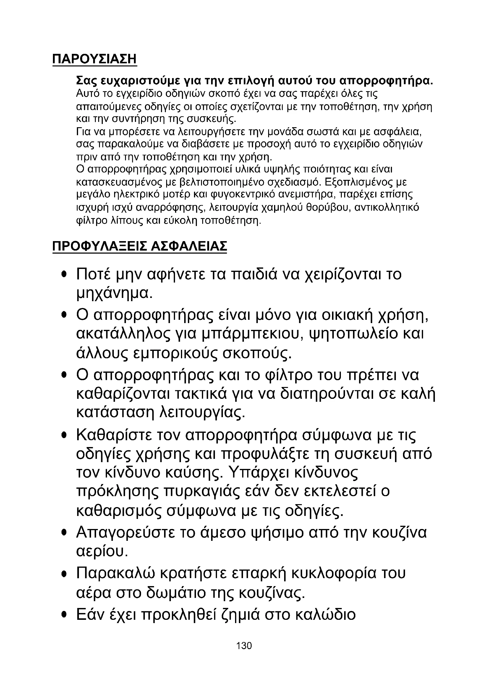 Ο απορροφητήρας είναι μόνο για οικιακή χρήση, ακατάλληλος για μπάρμπεκιου, ψητοπωλείο και άλλους εμπορικούς σκοπούς.