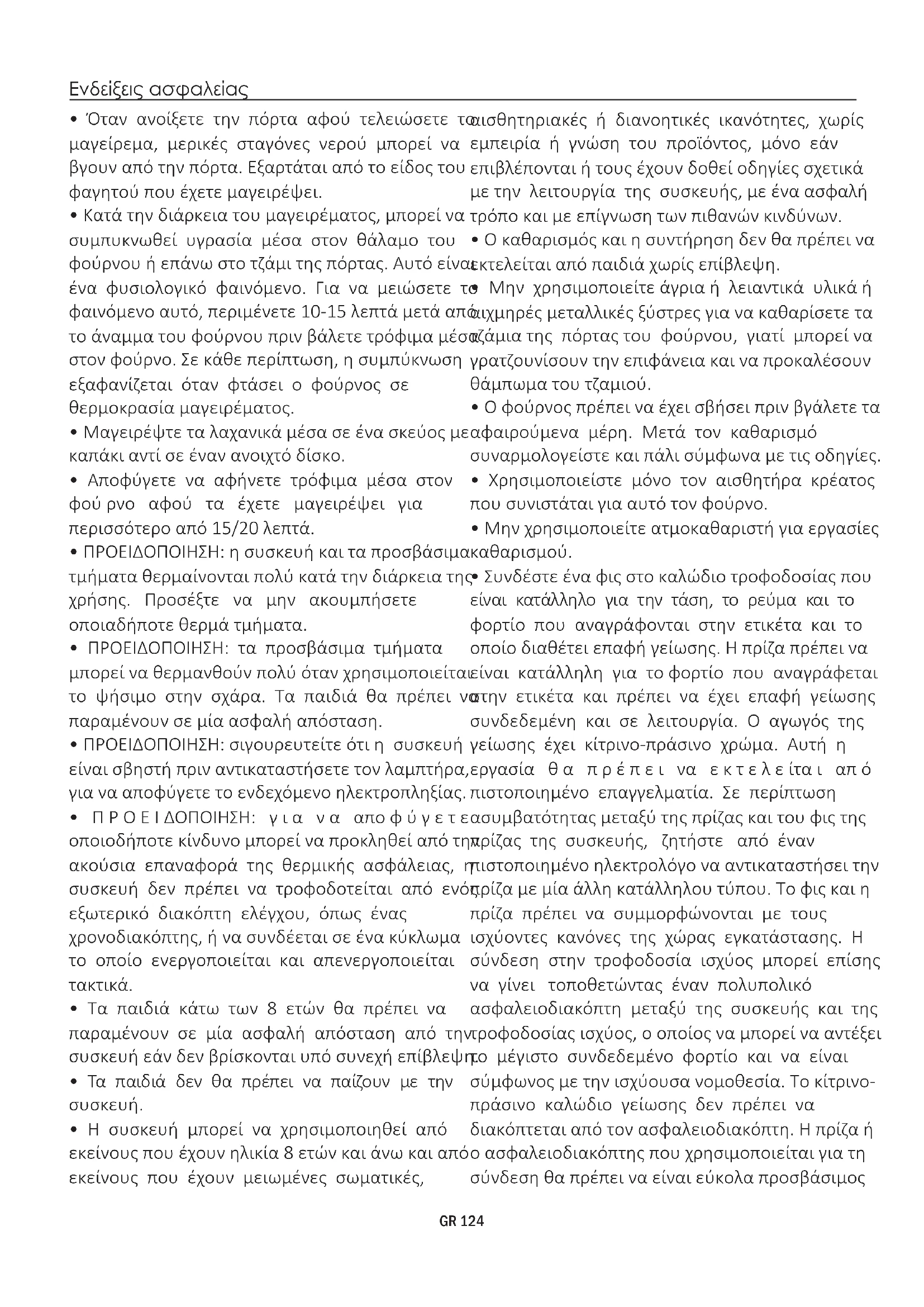 - ΠΡΟΕΙΔΟΠΟΙΗΣΗ: Ποτέ μην αφαιρείτε το λάστιχο της πόρτας του φούρνου.