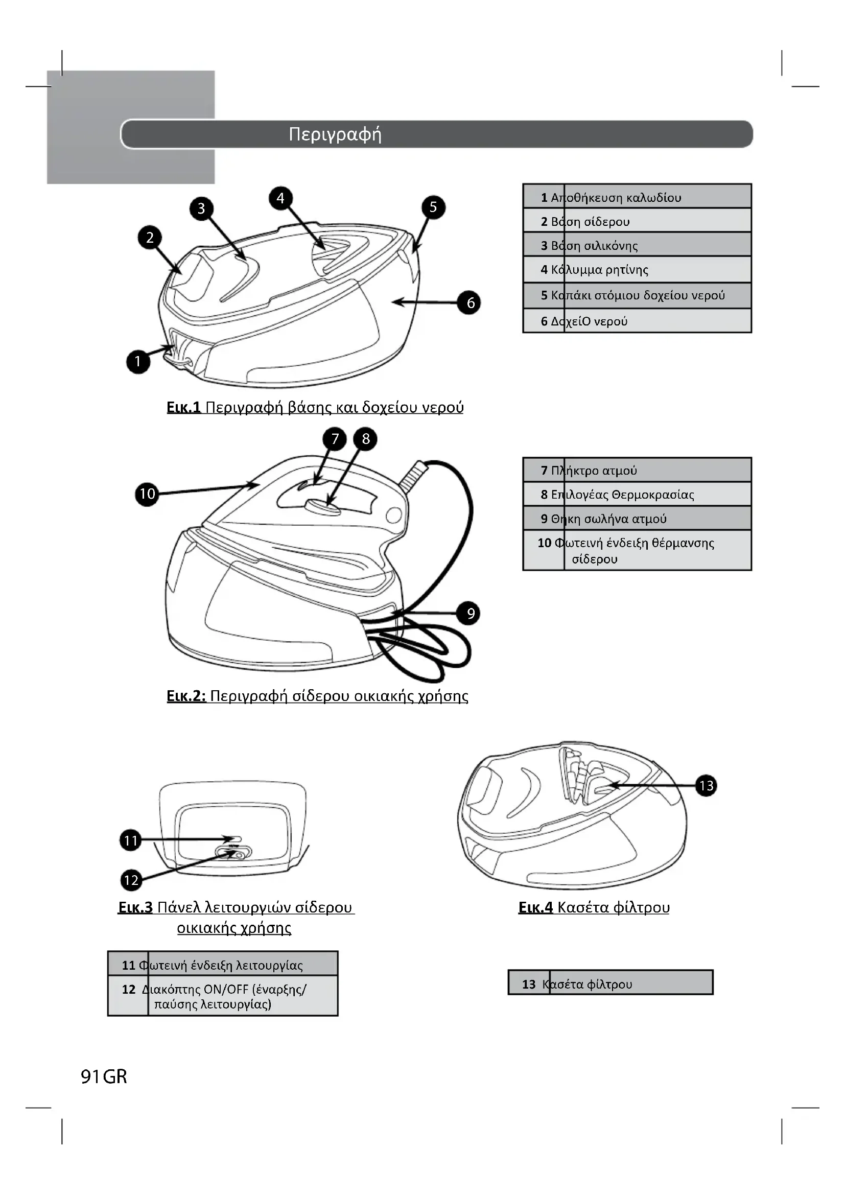 | H συοκεύη δεν παράγει ατμό | Δεν ἐχετε ανάψει τη συοκεύη | Πέοτετον διακόπητη on/off |