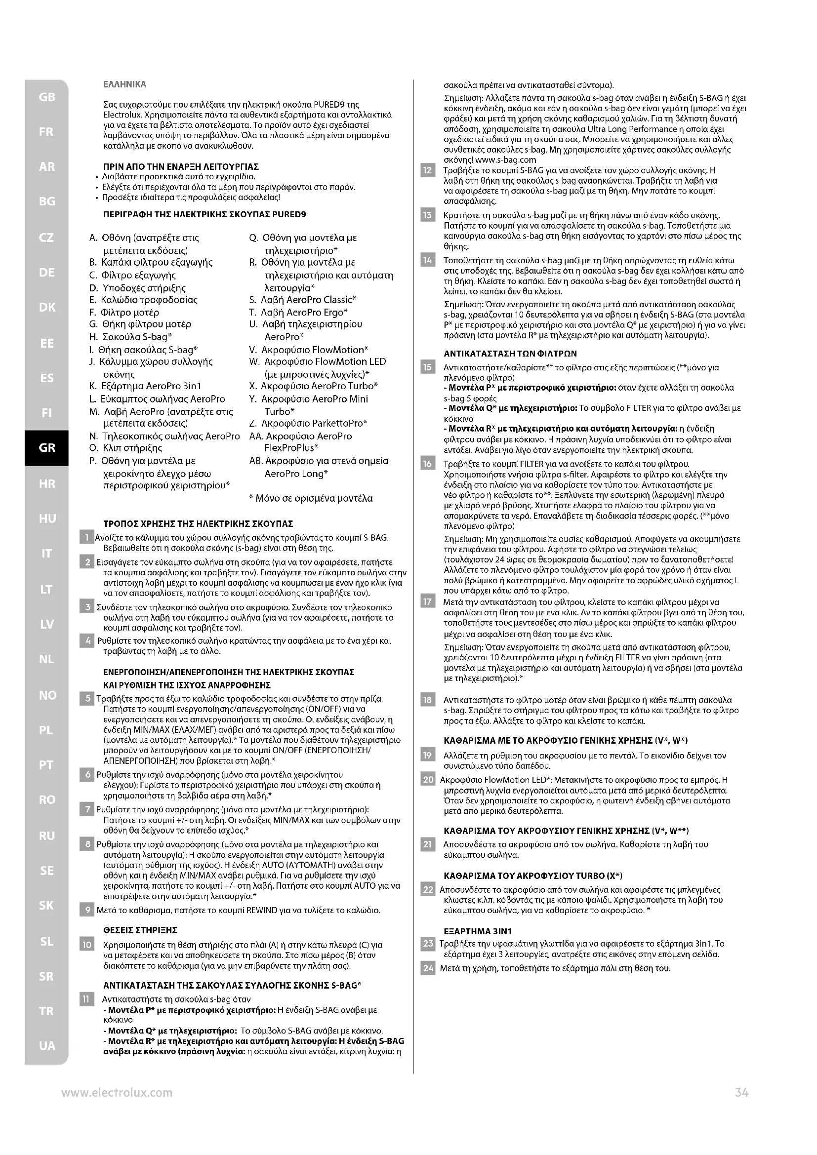UAΕΛΛΗΝΙΚΑ Σας ευχαριστούμε που επιλέξατε την ηλεκτρική σκούπα PURED9 της Electrolux. Χρησιμοποιείτε πάντα τα αυθεντικά εξαρτήματα και ανταλλακτικά για να έχετε τα βέλτιστα αποτελέσματα. Το προϊόν αυτό έχει σχεδιαστεί λαμβάνοντας υπόψη το περιβάλλον. Όλα τα πλαστικά μέρη είναι σημασμένα κατάλληλα με σκοπό να ανακυκλωθούν. ΠΡΙΝ ΑΠΟ ΤΗΝ ΕΝΑΡΞΗ ΛΕΙΤΟΥΡΓΙΑΣ