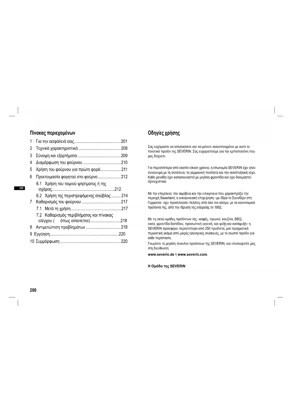 - Η Ομάδα της SEVERIN Πίνακας περιεχομένων 1 Για την ασφάλειά σας p. 201