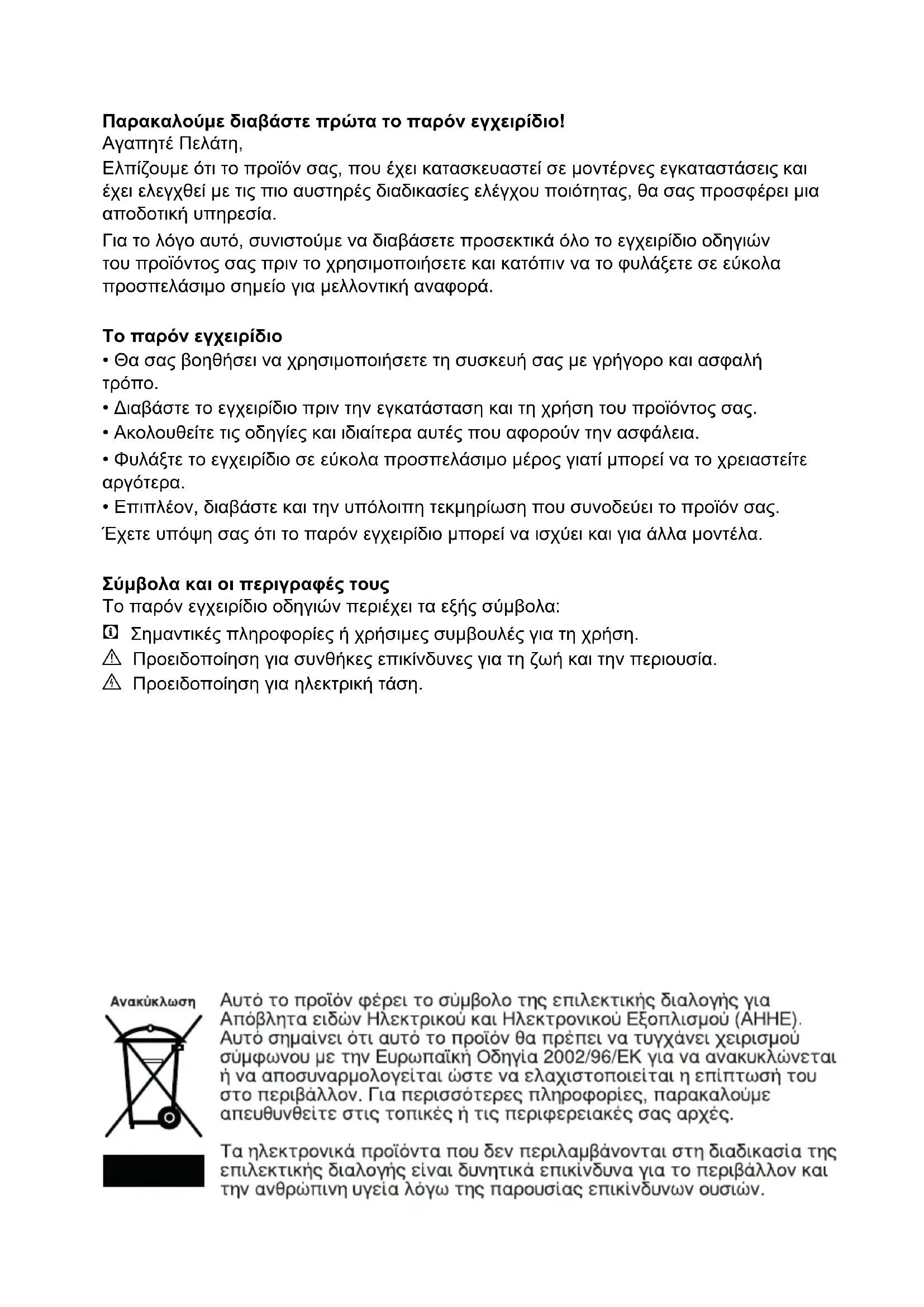 - Φυλάξτε το εγχειρίδιο σε εύκολα προσπελάσιμο μέρος γιατί μπορεί να το χρειαστείτε