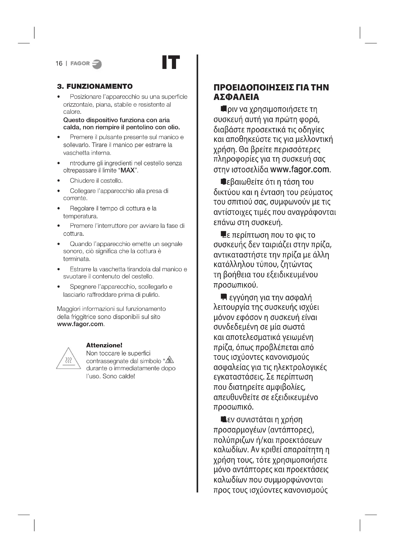 Πριν να χρησιμοποιήσετε τη συσκευή αυτή για πρώτη φορά, διαβάστε προσεκτικά τις οδηγίες και αποθηκεύστε τις για μελλοντική χρήση. Θα βρείτε περισσότερες πληροφορίες για τη συσκευή σας στην ιστοσελίδα www.fagor.com.