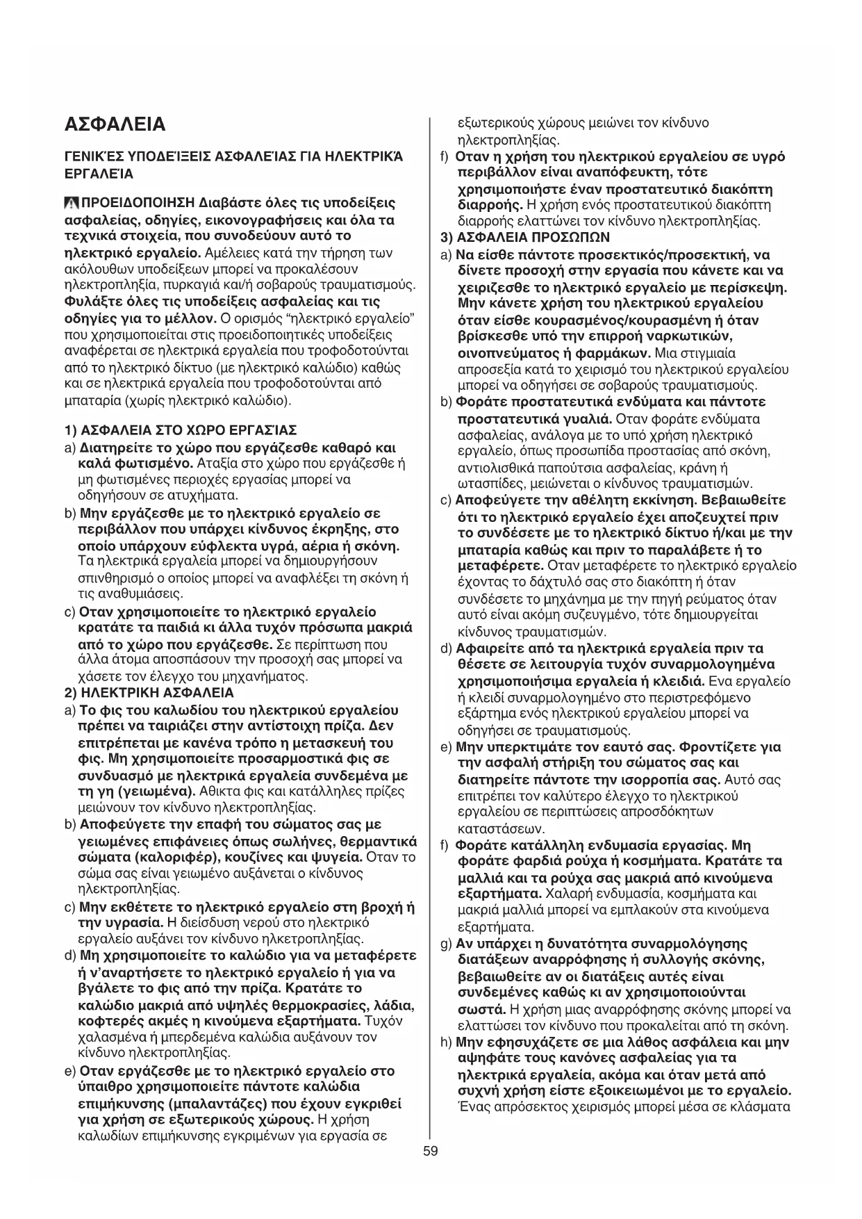 c) Anofoeuyte Tnv aelntn Ekkivnon. Bepaowtheta otTo nEeKTPiKO epyaleio exI anOzEvxtei npiv To ouvseoeTc eTo nEeKTPiKO siktuo n/kaI eTnu mpatia kaWc kal npiv To npapaalaeTe n to eTaepetE. Otav eTaepetE to nEeKTPiKO epyaleio exovtac to daxtuO oac oTO diaKoTTn h otav ouvdeoeTo uXavmae Tnv Tny npeuatoc otav auto eivai akoum ouzevuveo, tote dnmuoyeitai KivduvoCtpauatiamwv.