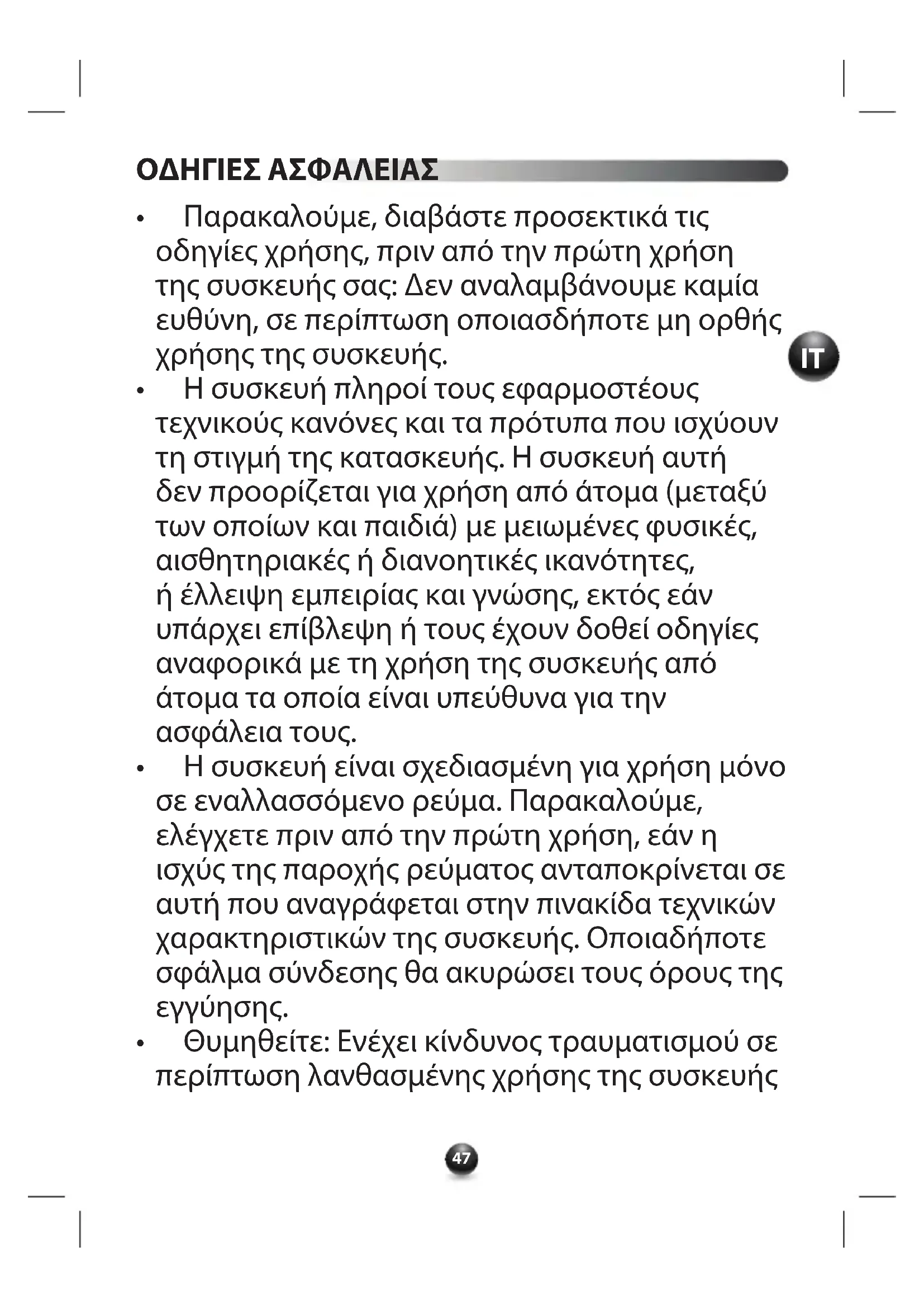 - Θυμηθείτε:Ενέχεικίνδυνοςτραυματισμούσε περίπτωσηλανθασμένηςχρήσηςτηςσυσκευής48