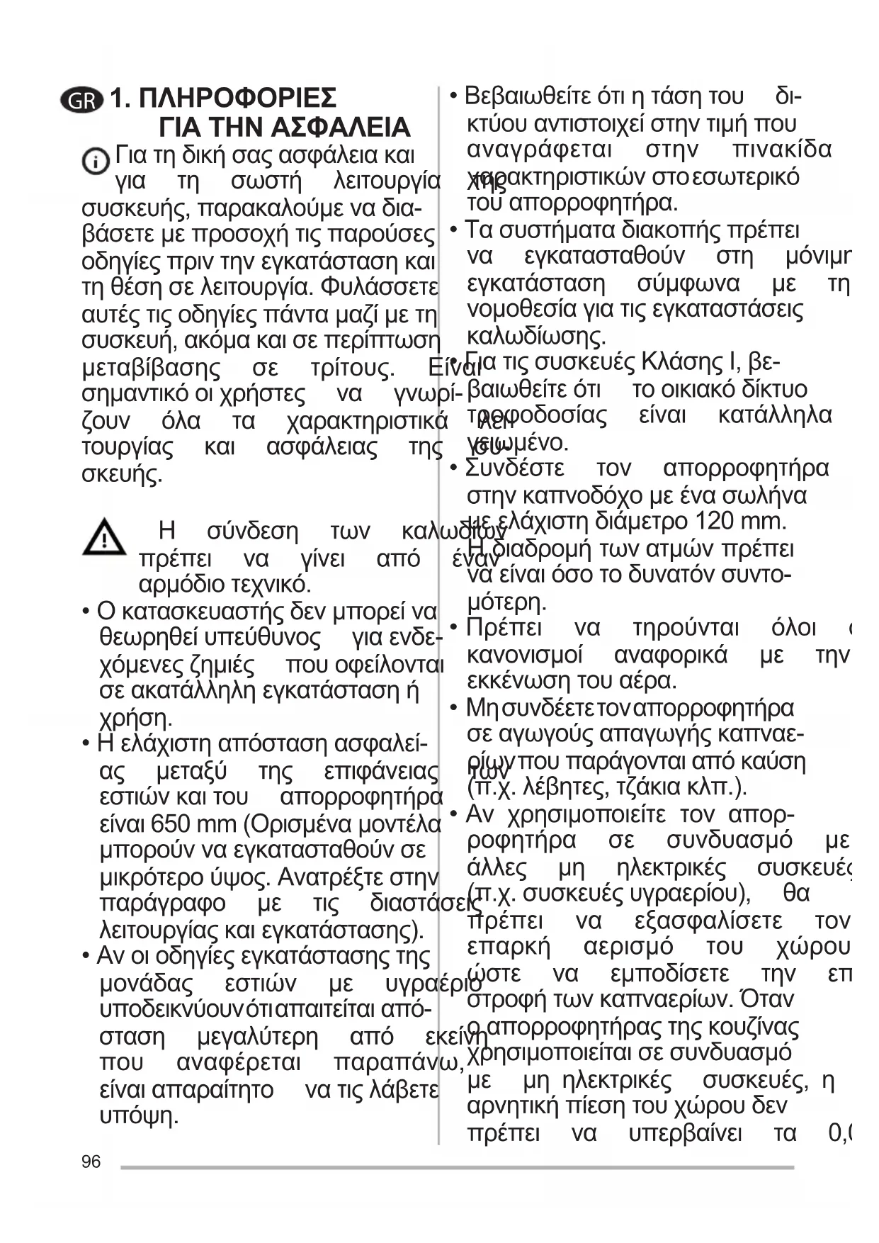 - Μησυνδέετετοναπορροφητήρα σεαγωγούςαπαγωγήςκαπναε- ρίωνπουπαράγονταιαπόκαύση (π.χ.λέβητες,τζάκιακλπ.).