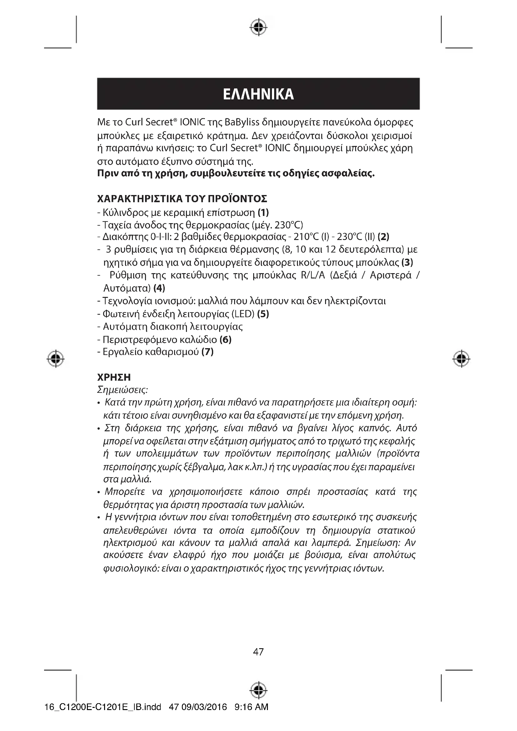 ΕΓΧΕΙΡΊΔΙΟ ΧΡΉΣΗΣ C1201E BABYLISS