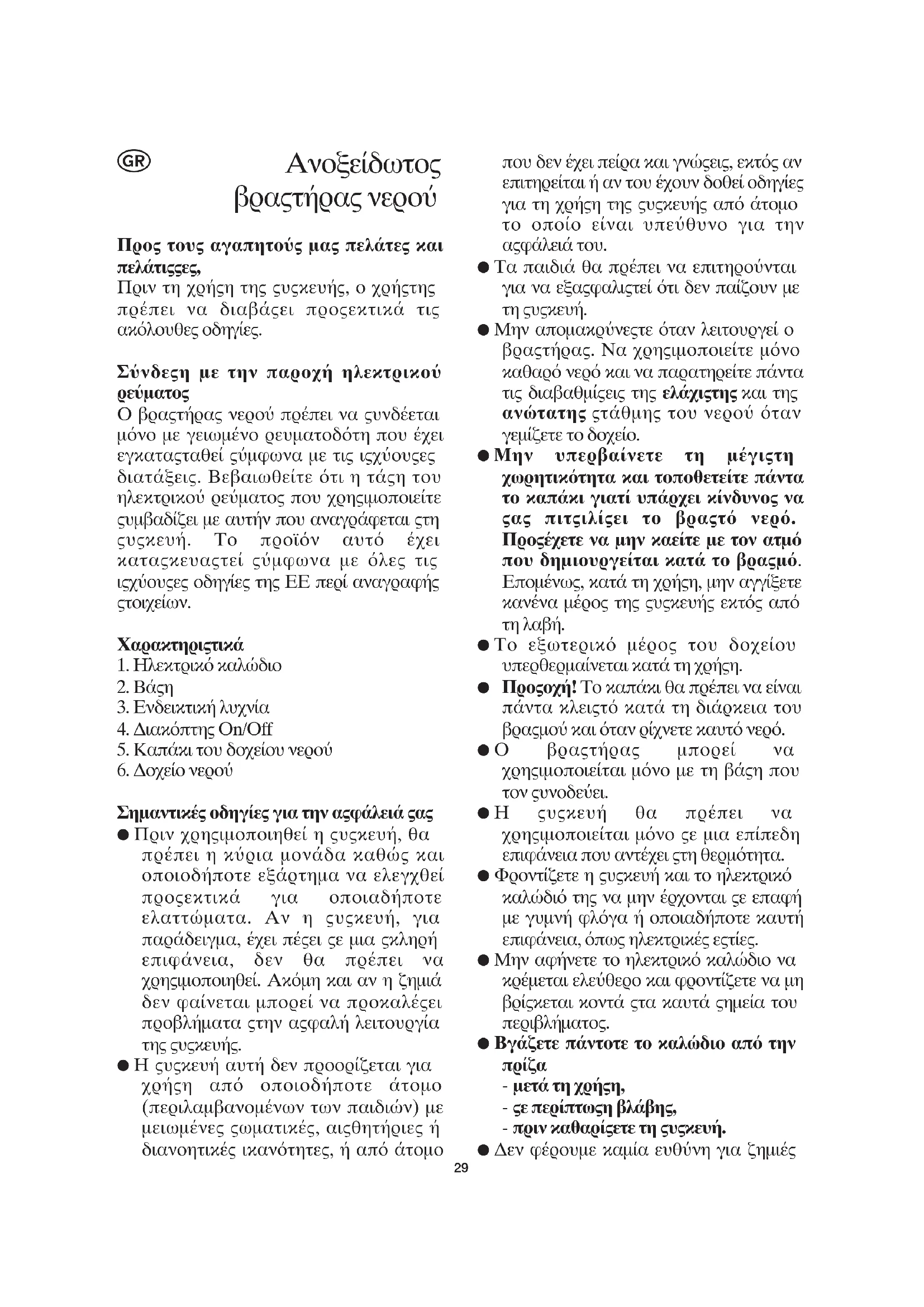 Κατεβάστε τις οδηγίες για το Ηλεκτρικός βραστήρας σε μορφή PDF δωρεάν! Βρείτε το εγχειρίδιό σας WK 9635 - SEVERIN και πάρτε ξανά την ηλεκτρονική σας συσκευή στα χέρια σας. Σε αυτή τη σελίδα δημοσιεύονται όλα τα έγγραφα που απαιτούνται για τη χρήση της συσκευής σας. WK 9635 της μάρκας SEVERIN.