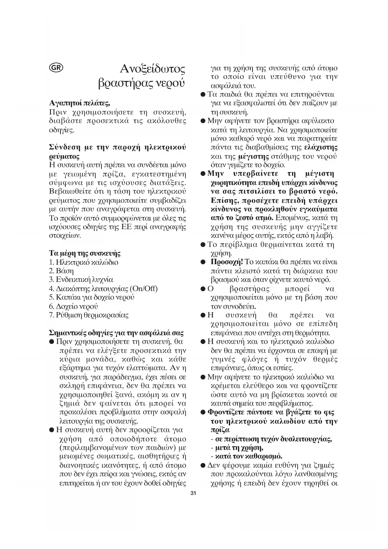- Mετα τη χοήση, βγάλτε το φις του ηλεκτοίανύ xαλωδίου από την ποίζα.