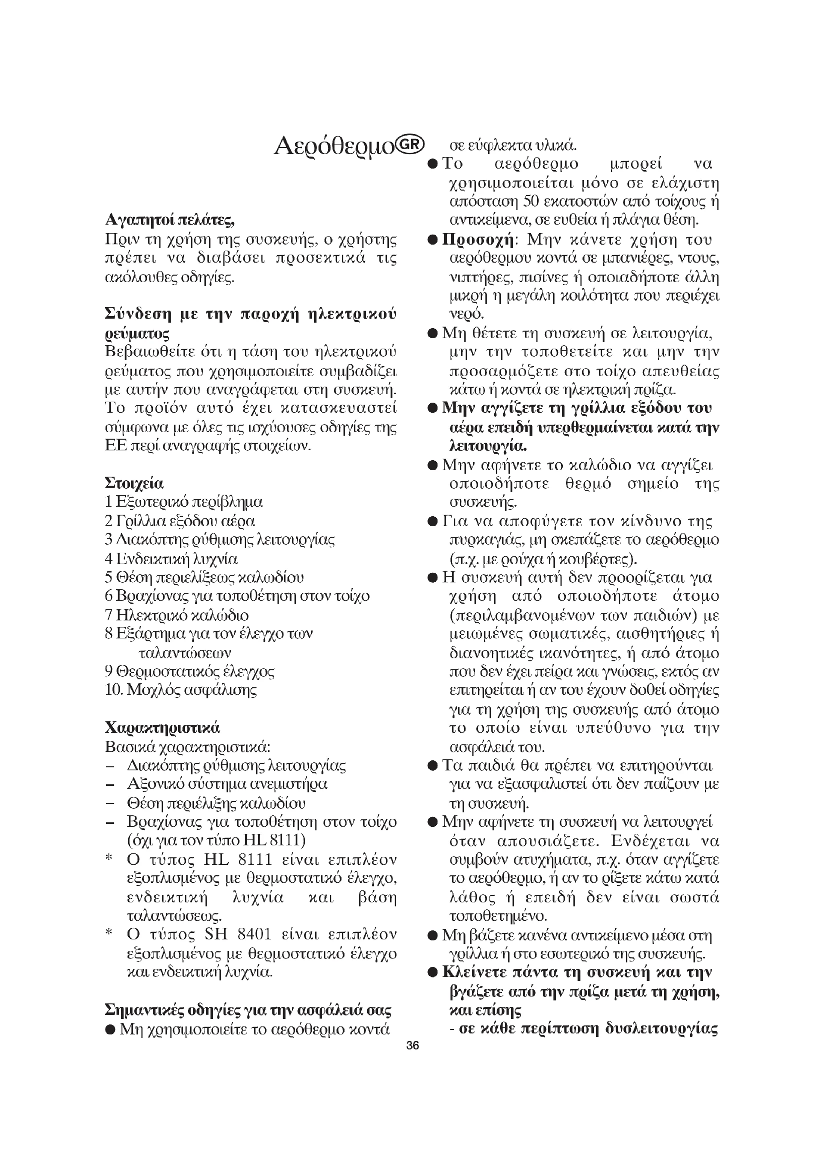 - O τύπος HL 8111 εἰναι εἰπιλέου έξοπλιομένος με θεμοστατιχό ἀλεγχο, ενδειατιχή λυχία ααι βάη ταλαντώεως.