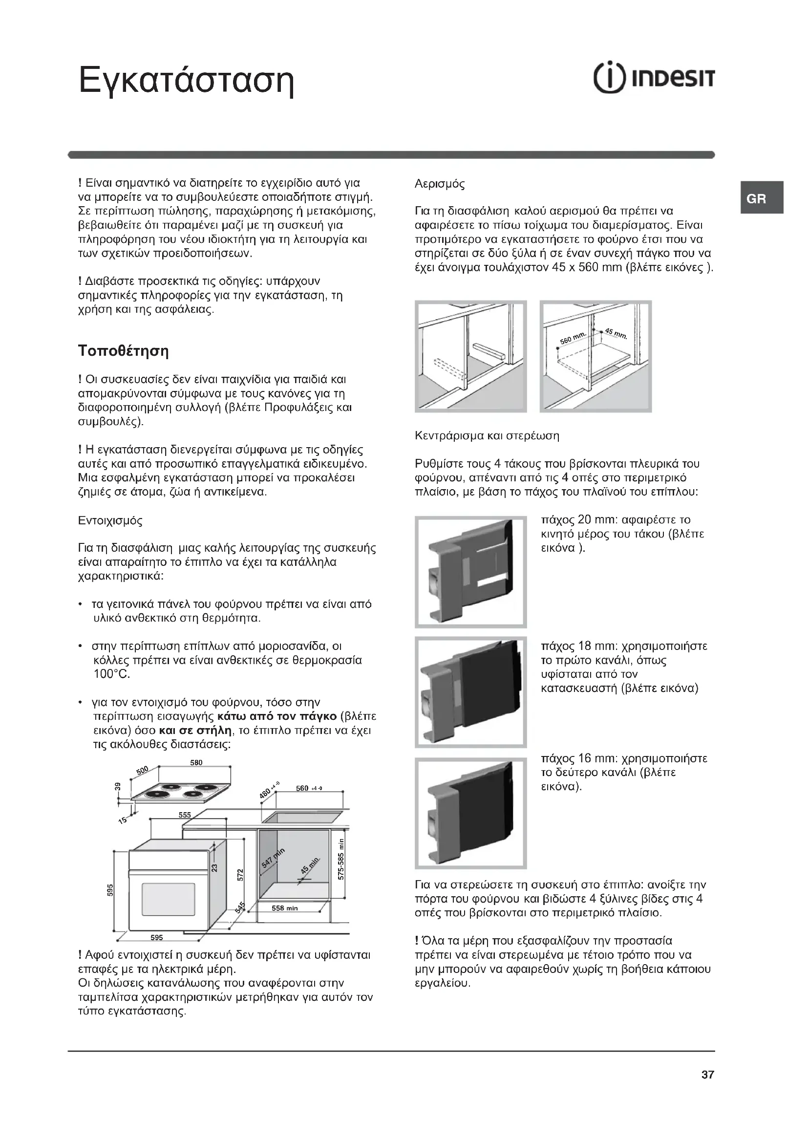 560 mm. 45 mm. Εγκατάσταση38
