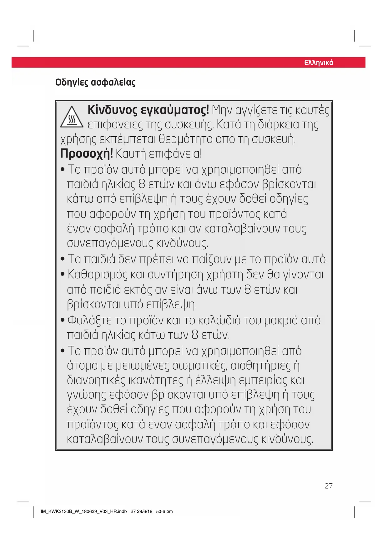 - Καθαρισμός και συντήρηση χρήστη δεν θα γίνονται από παιδιά εκτός αν είναι άνω των 8 ετών και βρίσκονται υπό επίβλεψη.