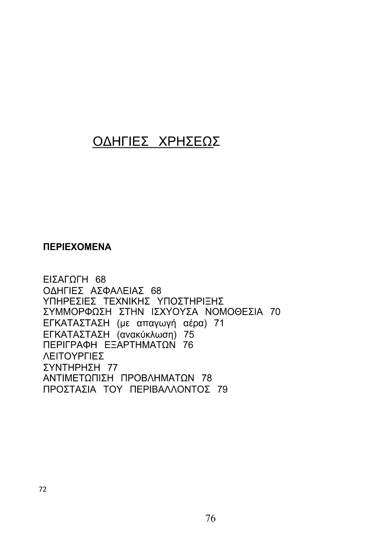 ΟΔΗΓΙΕΣ ΧΡΗΣΕΩΣ ΠΕΡΙΕΧΟΜΕΝΑ ΕΙΣΑΓΩΓΗ 68 ΟΔΗΓΙΕΣ ΑΣΦΑΛΕΙΑΣ 68 ΥΠΗΡΕΣΙΕΣ ΤΕΧΝΙΚΗΣ ΥΠΟΣΤΗΡΙΞΗΣ ΣΥΜΜΟΡΦΩΣΗ ΣΤΗΝ ΙΣΧΥΟΥΣΑ ΝΟΜΟΘΕΣΙΑ 70 ΕΓΚΑΤΑΣΤΑΣΗ (με απαγωγή αέρα) 71 ΕΓΚΑΤΑΣΤΑΣΗ (ανακύκλωση) 75 ΠΕΡΙΓΡΑΦΗ ΕΞΑΡΤΗΜΑΤΩΝ 76 ΛΕΙΤΟΥΡΓΙΕΣ ΣΥΝΤΗΡΗΣΗ 77 ΑΝΤΙΜΕΤΩΠΙΣΗ ΠΡΟΒΛΗΜΑΤΩΝ 78 ΠΡΟΣΤΑΣΙΑ ΤΟΥ ΠΕΡΙΒΑΛΛΟΝΤΟΣ 79