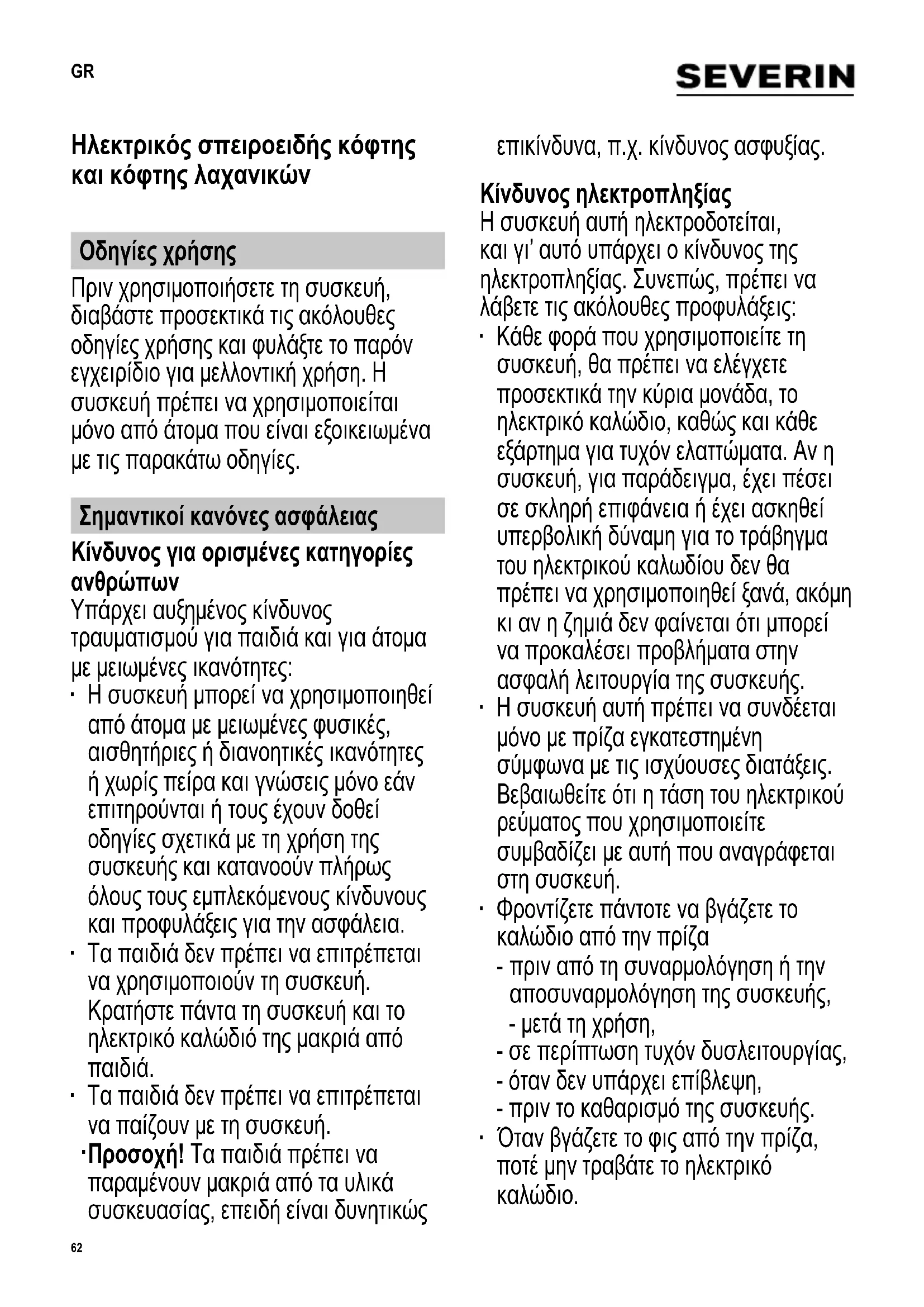 GR O δηγίες χρήσεως Ηλεκτρικός σπειροειδής κόφτης και κόφτης λαχανικών 62