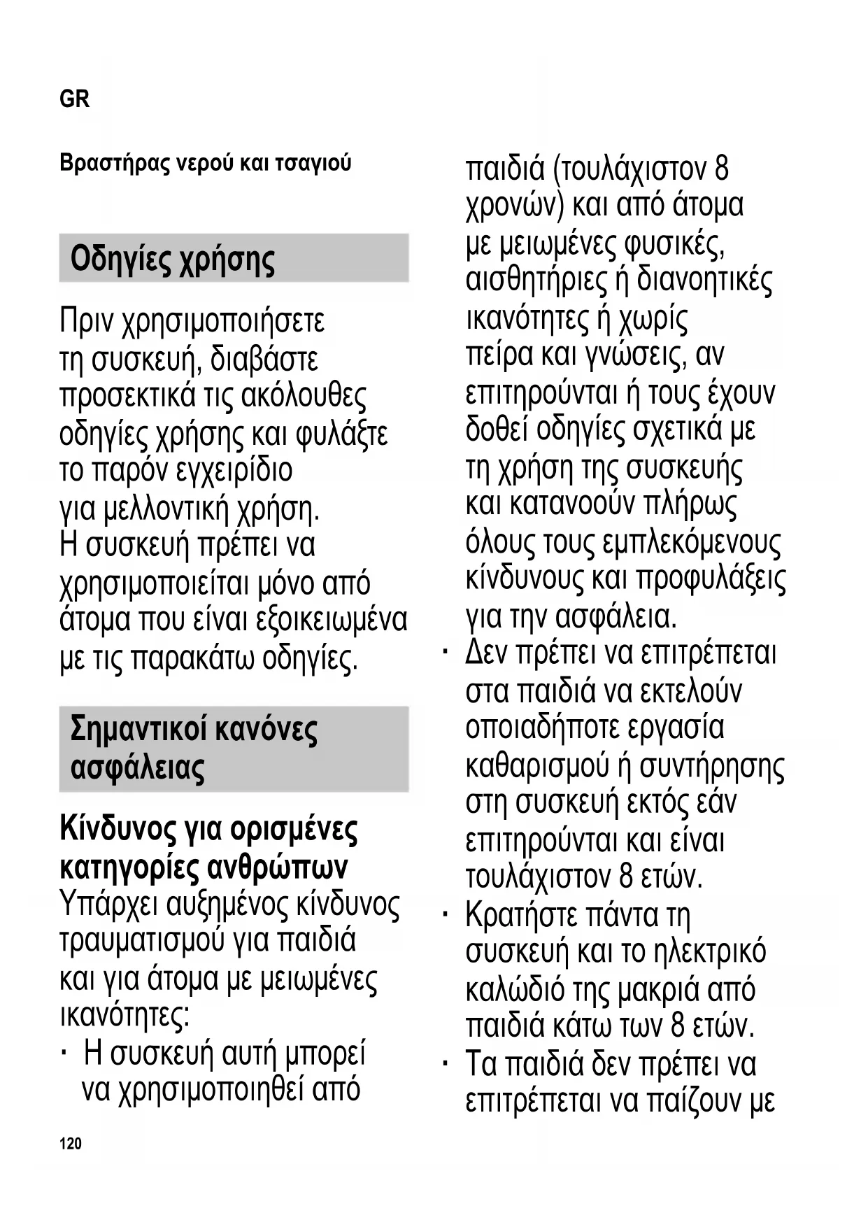 GR O δηγίες χρήσεως Βραστήρας νερού και τσαγιού 120