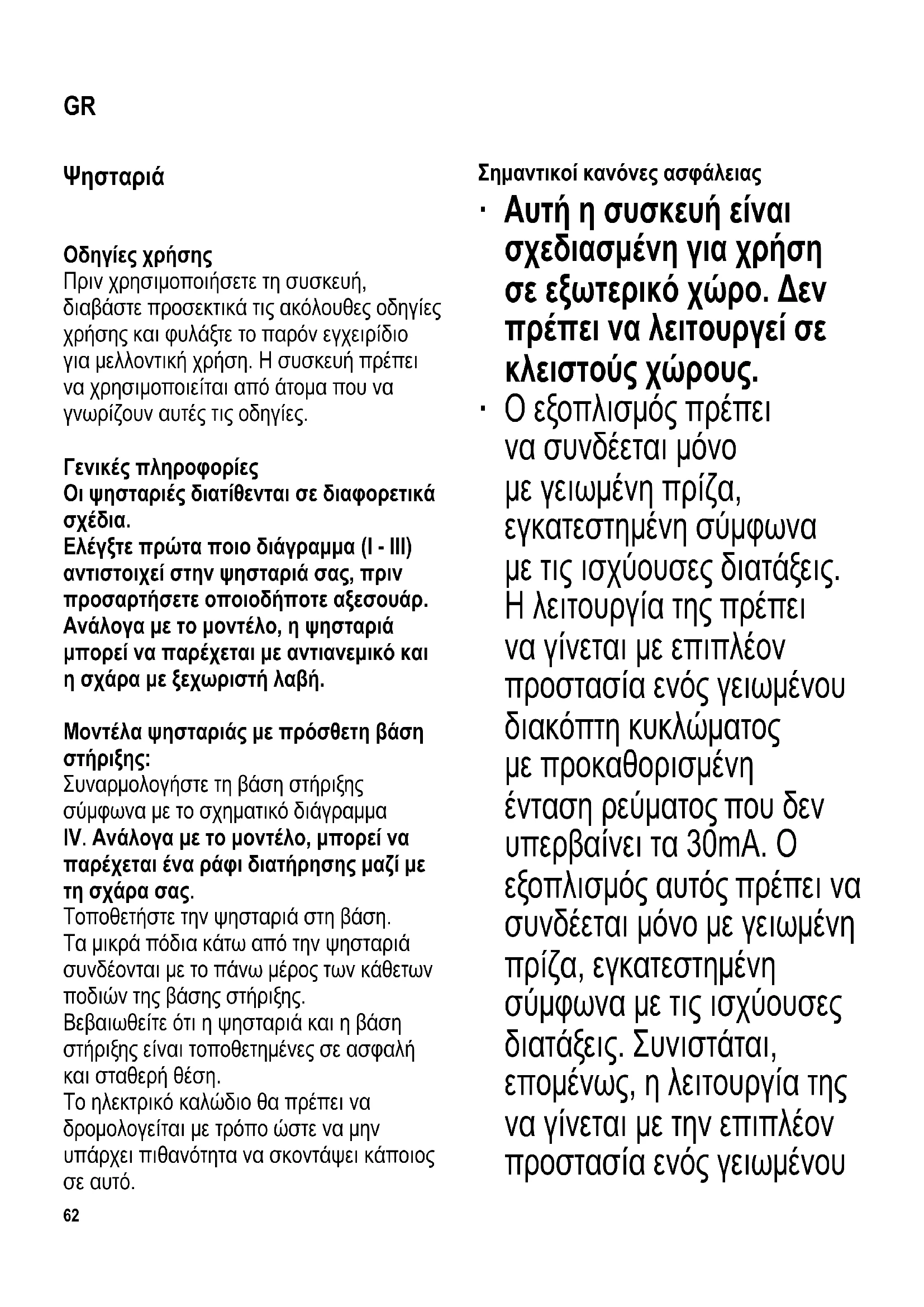 Οδηγίες χρήσης Πριν χρησιμοποιήσετε τη συσκευή, διαβάστε προσεκτικά τις ακόλουθες οδηγίες χρήσης και φυλάξτε το παρόν εγχειρίδιο για μελλοντική χρήση. Η συσκευή πρέπει να χρησιμοποιείται από άτομα που να γνωρίζουν αυτές τις οδηγίες. Γενικές πληροφορίες Οι ψησταριές διατίθενται σε διαφορετικά