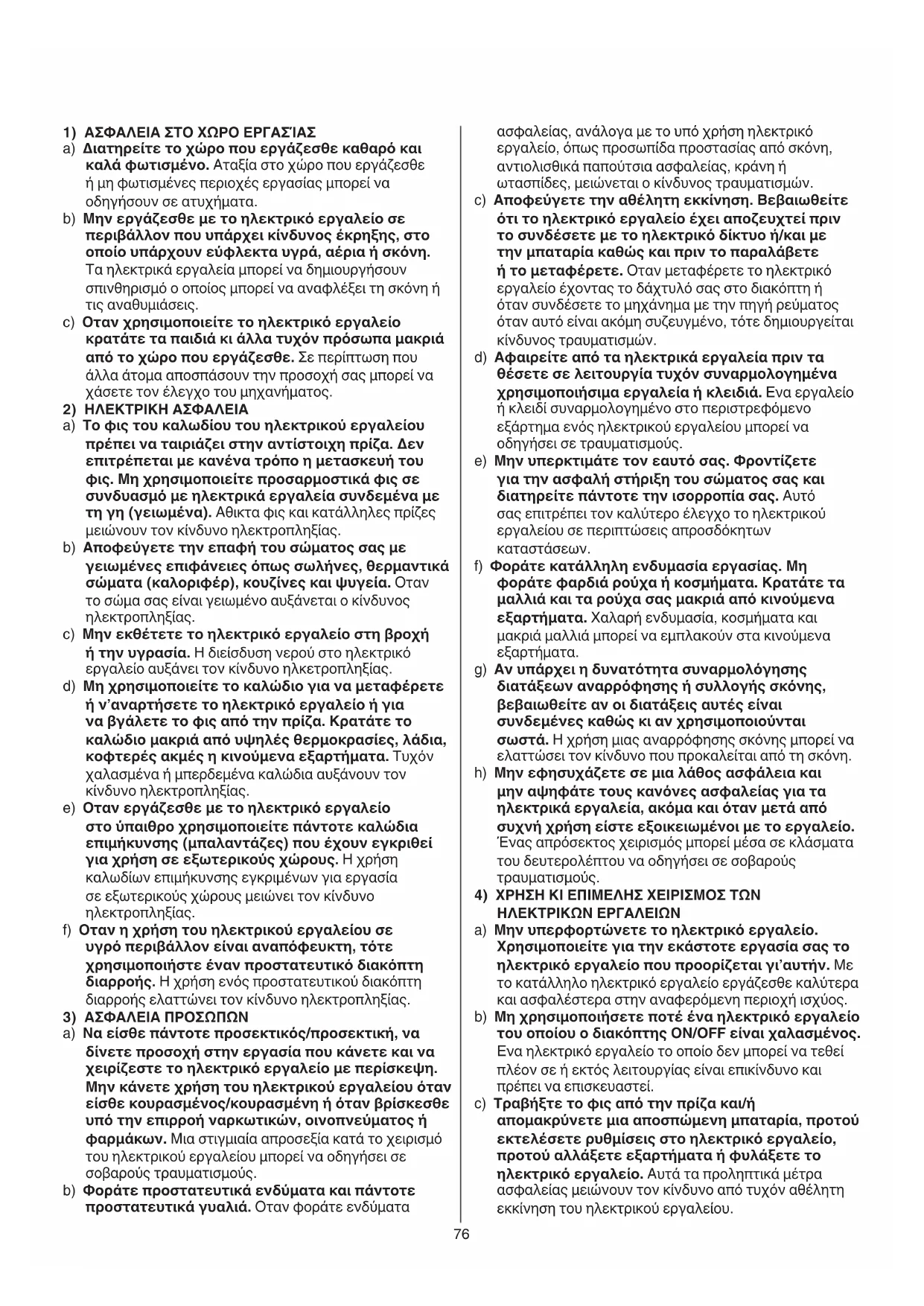 - Κατά την εργασία vα κρατάτε πάvτoτε τo εργαλείo σφιχτά με τα δύο χέρια και φροντίστε να στέκεστε