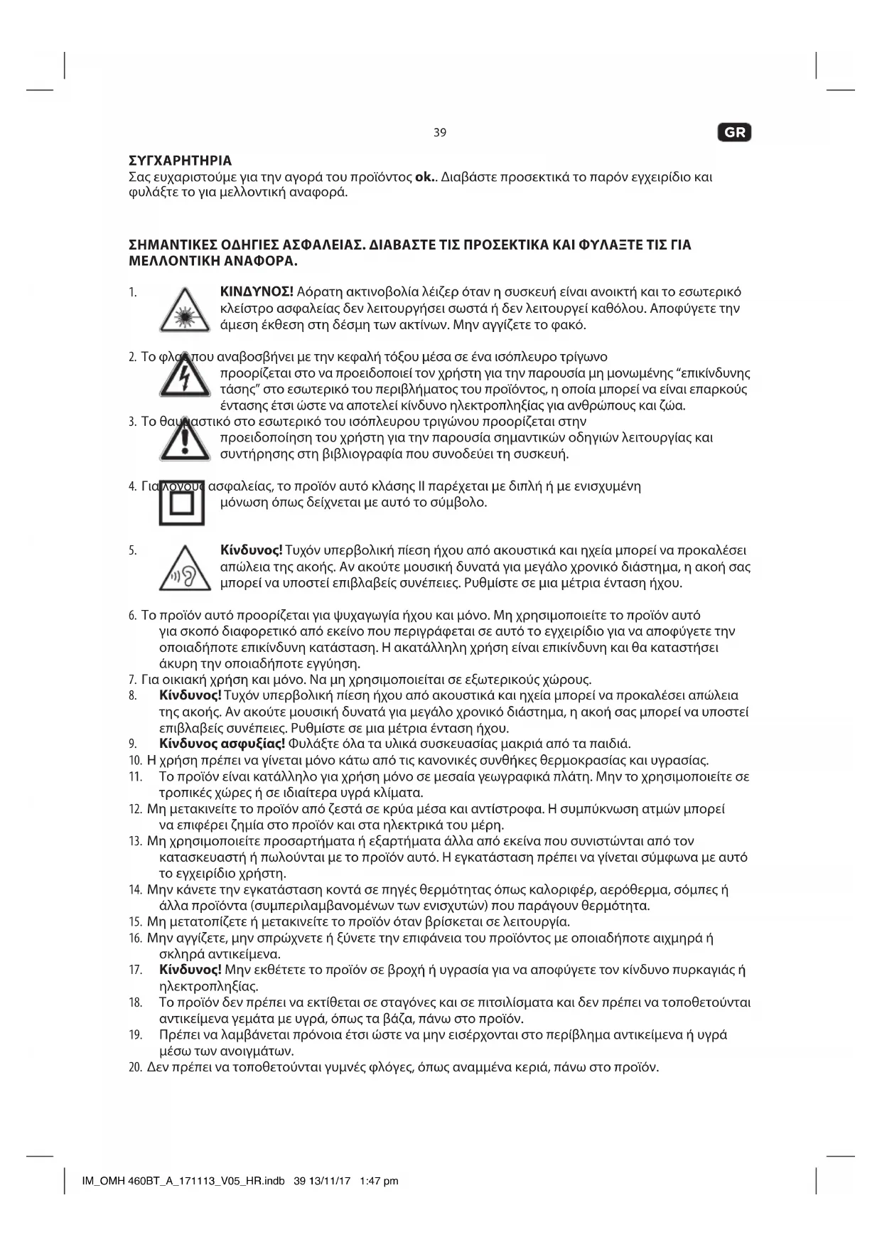 κρατήστε το μακριά από τα παιδιά. IM_OMH 460BT_A_171113_V05_HR.indb 40 13/11/17 1:47 pm41