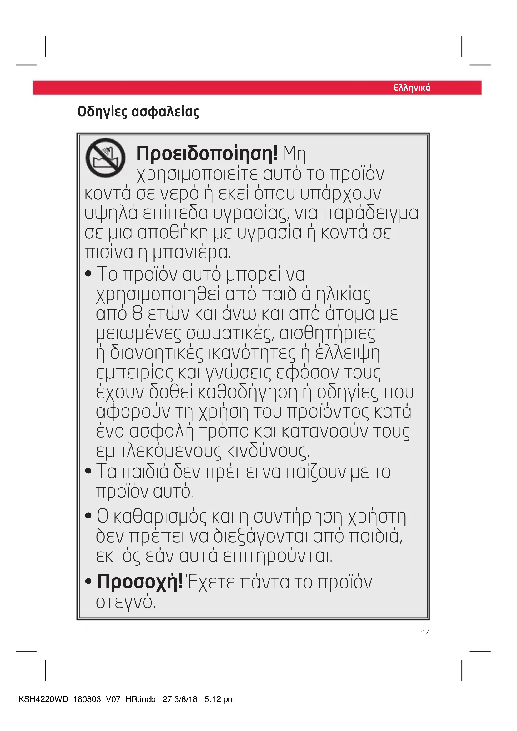 μπαταρία του προϊόντος όταν αυτό δεν βρίσκεται υπό επίβλεψη. IM_KSH4220WD_180803_V07_HR.indb 28 3/8/18 5:12 pm29
