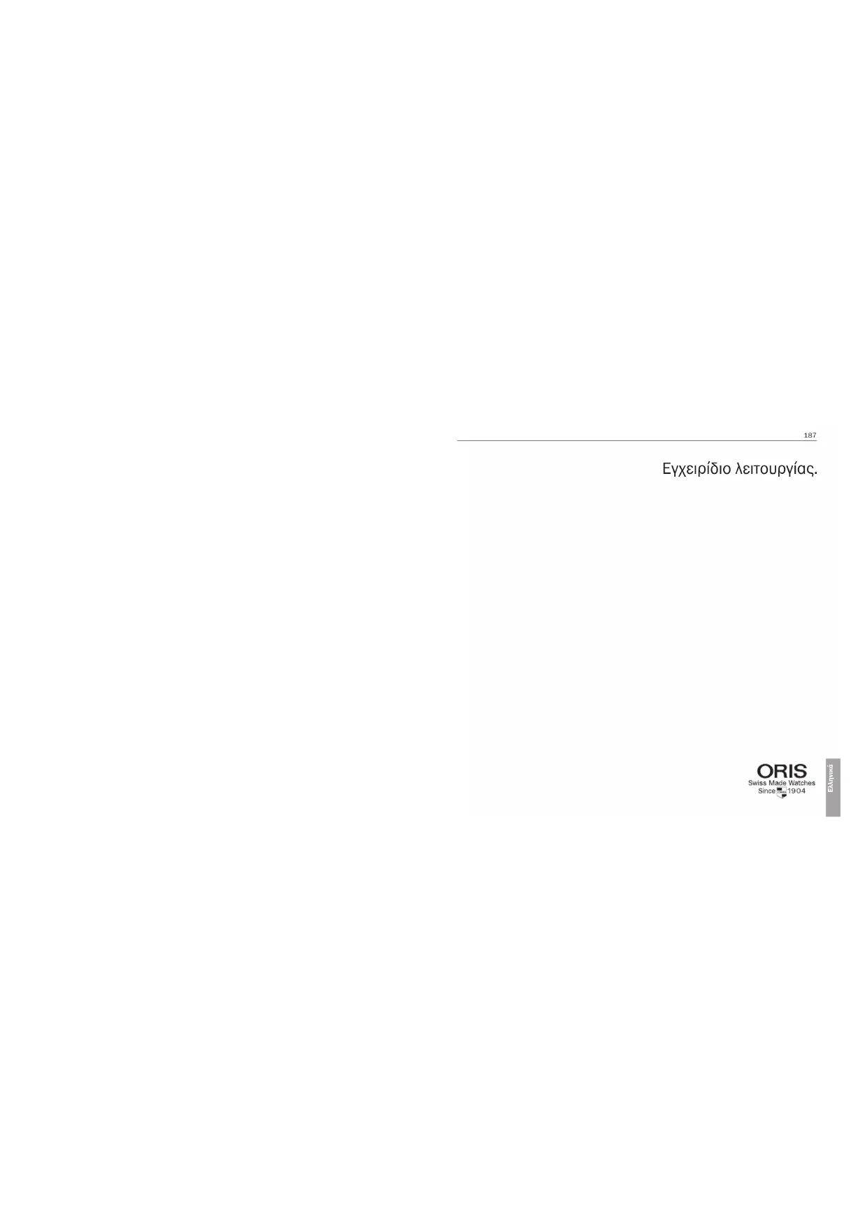 ΕλληνικάΤα συγχαρητήριά μας για την αγορά του καινούργιου σας ρολογιού Oris και σας καλωσορίζουμε θερμά στους λάτρεις των μηχανικών ρολογιών. Επειδή, ο κόσμος της Oris αφορά μόνο μηχανικά συστήματα και τίποτα άλλο εκτός από αυτά. Το ρολόι Oris που αγοράσατε ξεχωρί- ζει από τη μαζική αγορά και από τα προϊόντα υψηλής μόδας. Αντίθετα, ενσωματώνει τις πραγματικές αξίες της Ελβετικής τέχνης της ωρολογο- ποιίας με τα συναρπαστικά μικρομη- χανικά εξαρτήματα και το κομψά άψογο εξωτερικό του. Τα ρολόγια Oris όχι μόνο είναι κληρονόμοι μιας μακροχρόνιας παράδοσης, που χρονολογείται από το 1904, αλλά πε- ριλαμβάνουν επίσης και ένα σύστημα υψηλής μηχανικής, εμπνευσμένο με την τέχνη των ωρολογοποιών μας και ανεπτυγμένο σε συνεργασία με γνωστούς επαγγελματίες από τον κόσμο της Φόρμουλα 1, των καταδύ- σεων και της αεροπορίας. Ένα άλλο πολύ σημαντικό χαρακτηρι- στικό στους σύγχρονους καιρούς μας: τα ρολόγια Oris δεν χρειάζονται μπαταρίες, επειδή εσείς οι ίδιοι τρο- φοδοτείτε το δικό σας ρολόι Oris με ισχύ, μέσω των δικών σας κινήσεων ή κουρδίζοντάς το με το χέρι. Παρακαλούμε, επισκεφθείτε τον ιστότοπό μας στη διεύθυνση www.oris.ch για περισσότερες πλη- ροφορίες και για μια δωρεάν παράταση του διαστήματος εγγύη- σης, που λαμβάνετε με την εγγραφή σας στο αποκλειστικό κλαμπ μελών της Oris: το MyOris. Σας ευχόμαστε τις καλύτερες ποιοτικές στιγμές με το Oris σας. Ulrich W. Herzog