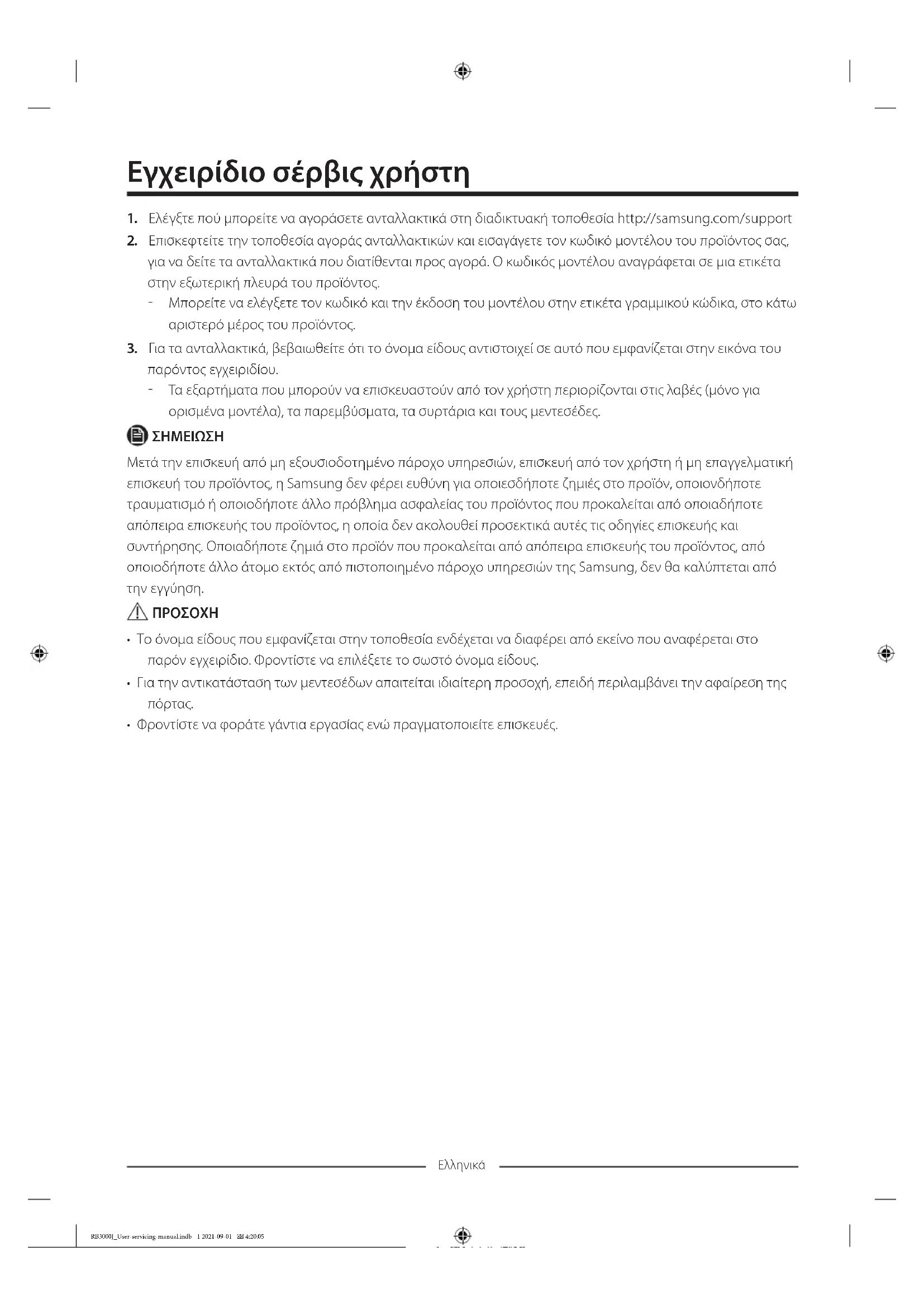 πόρτα όταν την αποσυναρμολογείτε.) RB3000J_User-servicing-manual.indb 7 2021-09-01 4:20:06Ελληνικά