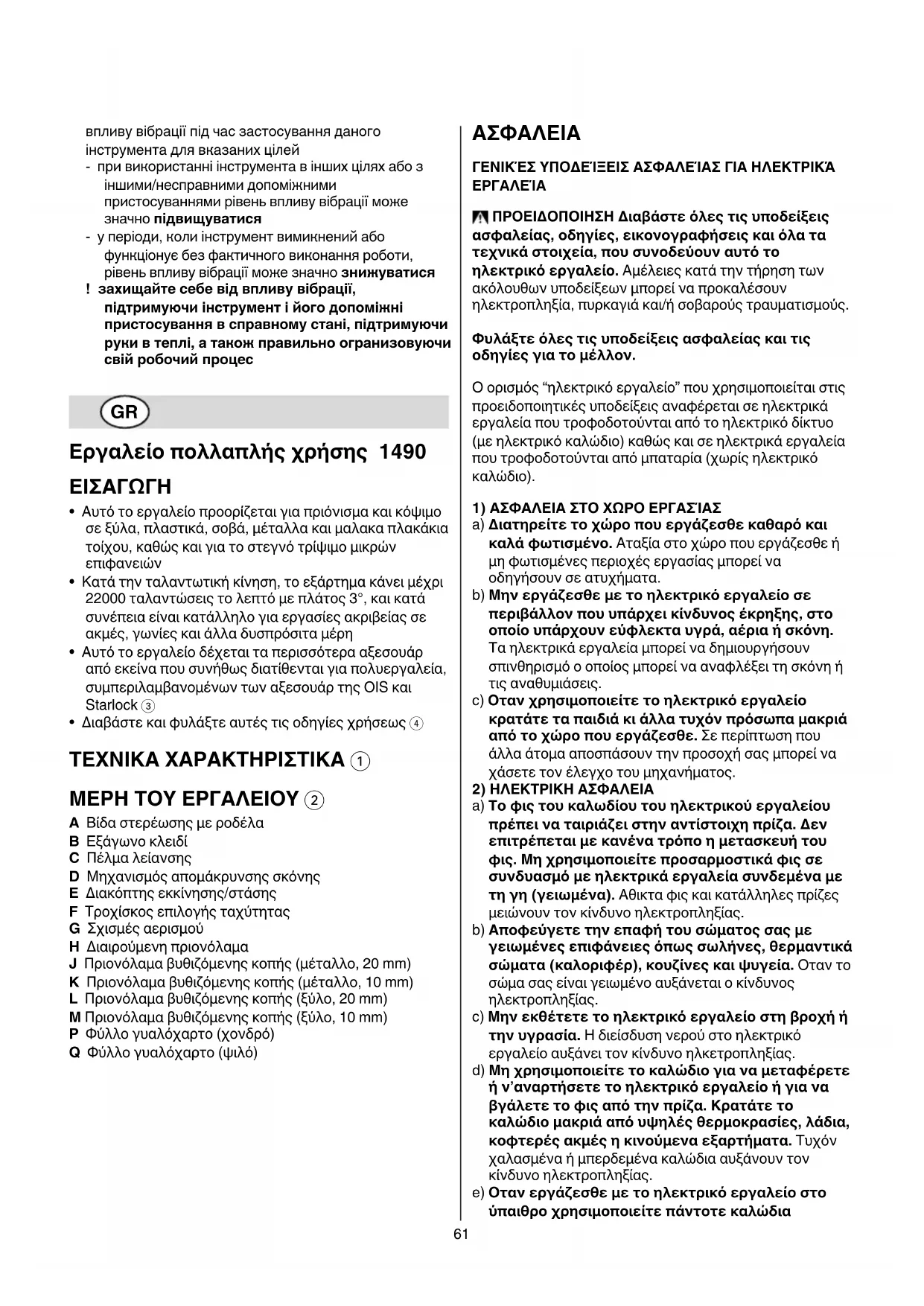 a) Δίνετε το ηλεκτρικό σας εργαλείο για επισκευή από άριστα ειδικευμένο προσωπικό, μόνο με γνήσια ανταλλακτικά. Eτσι εξασφαλίζεται η διατήρηση της ασφάλειας του ηλεκτρικού εργαλείου.63 YΠΟΔΕΙΞΕΙΣ ΑΣΦΑΛΕΙΑΣ ΓΙΑ ΕΡΓΑΛΕΙΑ ΠΟΛΛΑΠΛΗΣ XΡΗΣΗΣ ΓΕΝIΚΑ