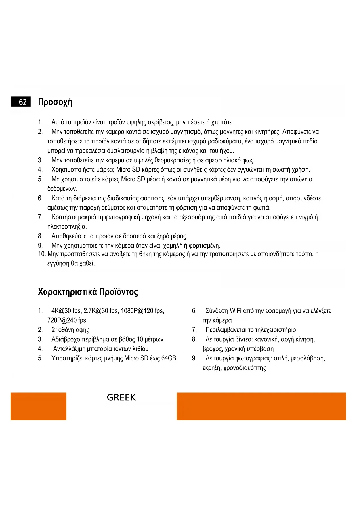 10.Μηνπροσπαθήσετεναανοίξετετηθήκητηςκάμεραςήνατηντροποποιήσετεμεοποιονδήποτετρόπο,η εγγύησηθαχαθεί. Χαρακτηριστικά Προϊόντος