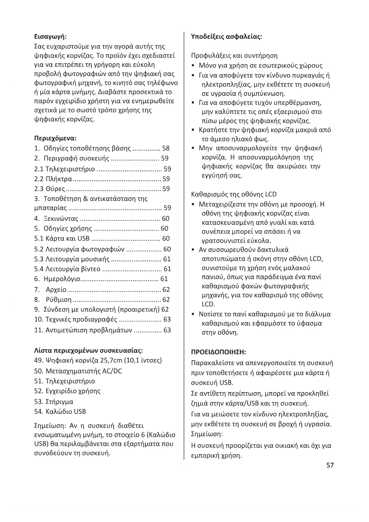 Σας ευχαριστούμε για την αγορά αυτής της ψηφιακής κορνίζας. Το προϊόν έχει σχεδιαστεί για να επιτρέπει τη γρήγορη και εύκολη προβολή φωτογραφιών από την ψηφιακή σας φωτογραφική μηχανή, το κινητό σας τηλέφωνο ή μία κάρτα μνήμης. Διαβάστε προσεκτικά το παρόν εγχειρίδιο χρήστη για να ενημερωθείτε σχετικά με το σωστό τρόπο χρήσης της ψηφιακής κορνίζας.