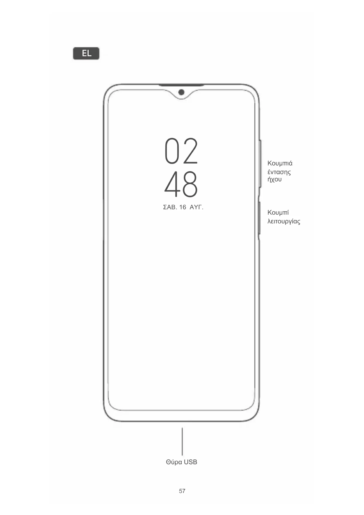 57Σας ευχαριστούμε που επιλέξατε το Redmi 9AT Πατήστε παρατεταμένα το κουμπί λειτουργίας για να ενεργοποιήσετε τη συσκευή. Ακολουθήστε τις οδηγίες που εμφανίζονται στην οθόνη για να διαμορφώσετε τη
