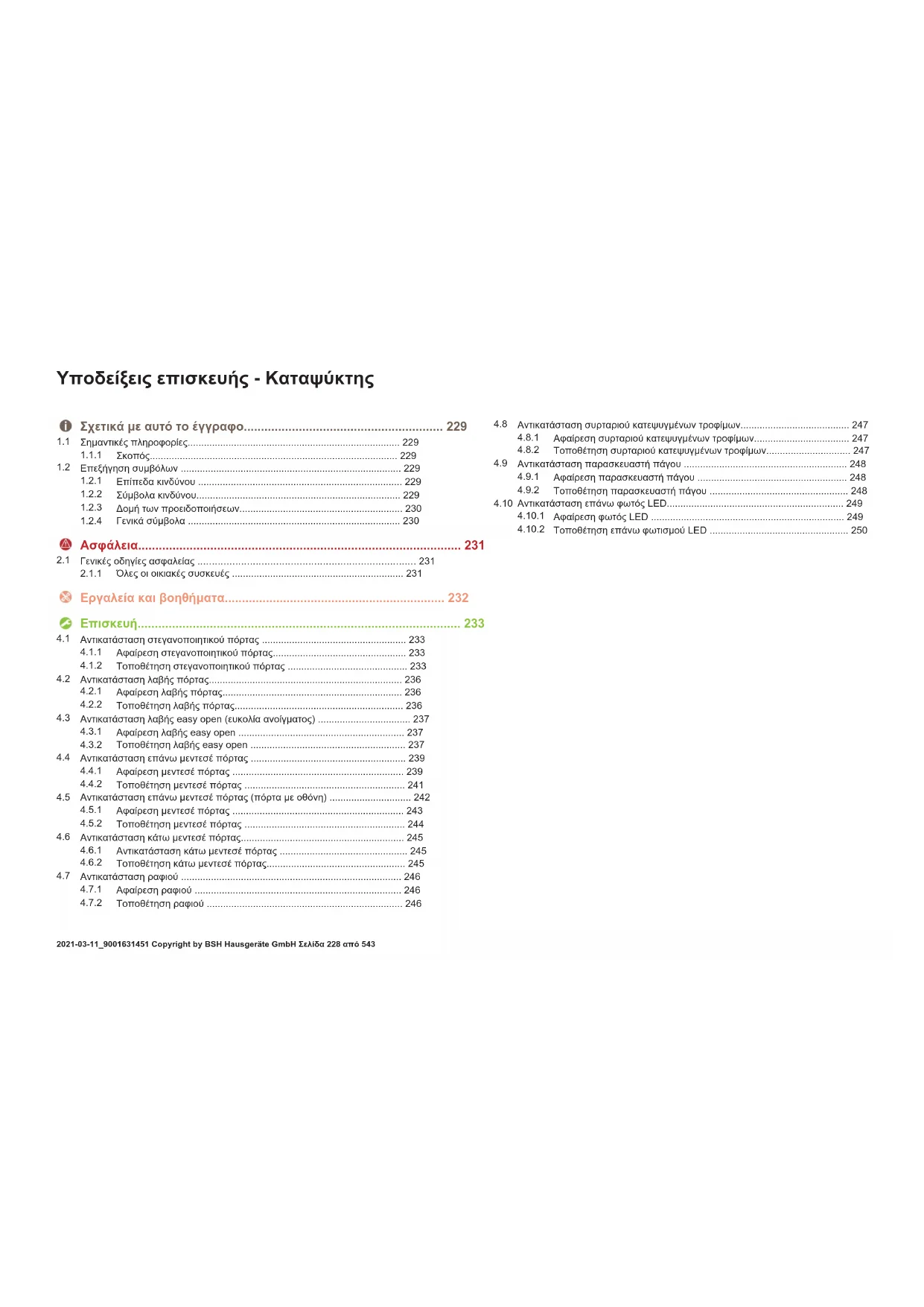 Τοποθέτηση επάνω φωτισμού LED ...................................................250 Yποδείξεις επισκευής-Καταψύκτης 2021-03-11_9001631451 Copyright by BSH Hausgeräte GmbH Σελίδα228από543Σχετικά με αυτό το έγγραφο