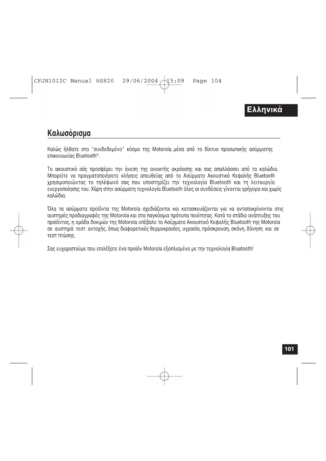 Καλώς ήλθατε στο "συνδεδεµένο" κσµο της Motorola, µέσα απ το δίκτυο προσωπικής ασύρµατης επικοινωνίας Bluetooth
