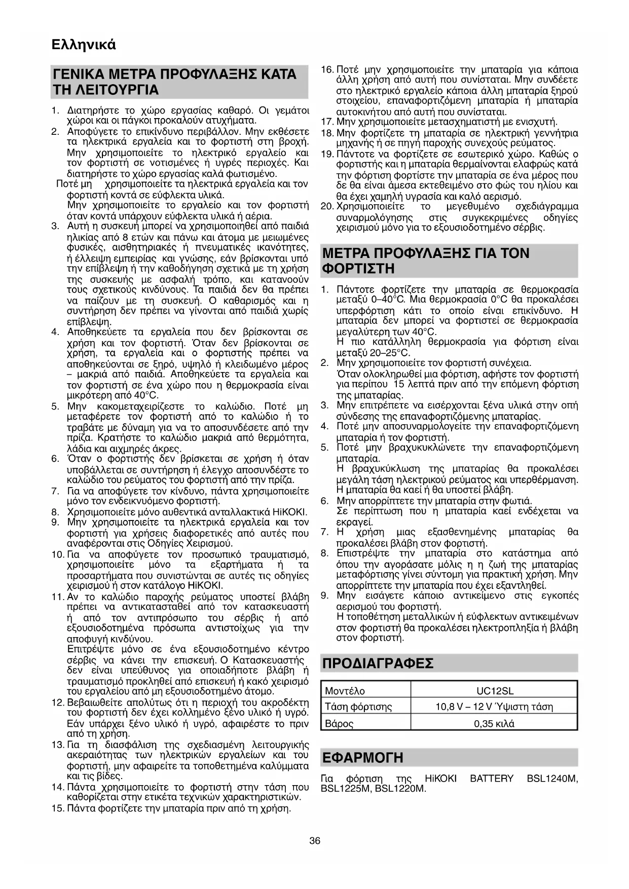 UC 12SL - Φορτιστής μπαταριών HiKOKI - Δωρεάν εγχειρίδιο χρήσης