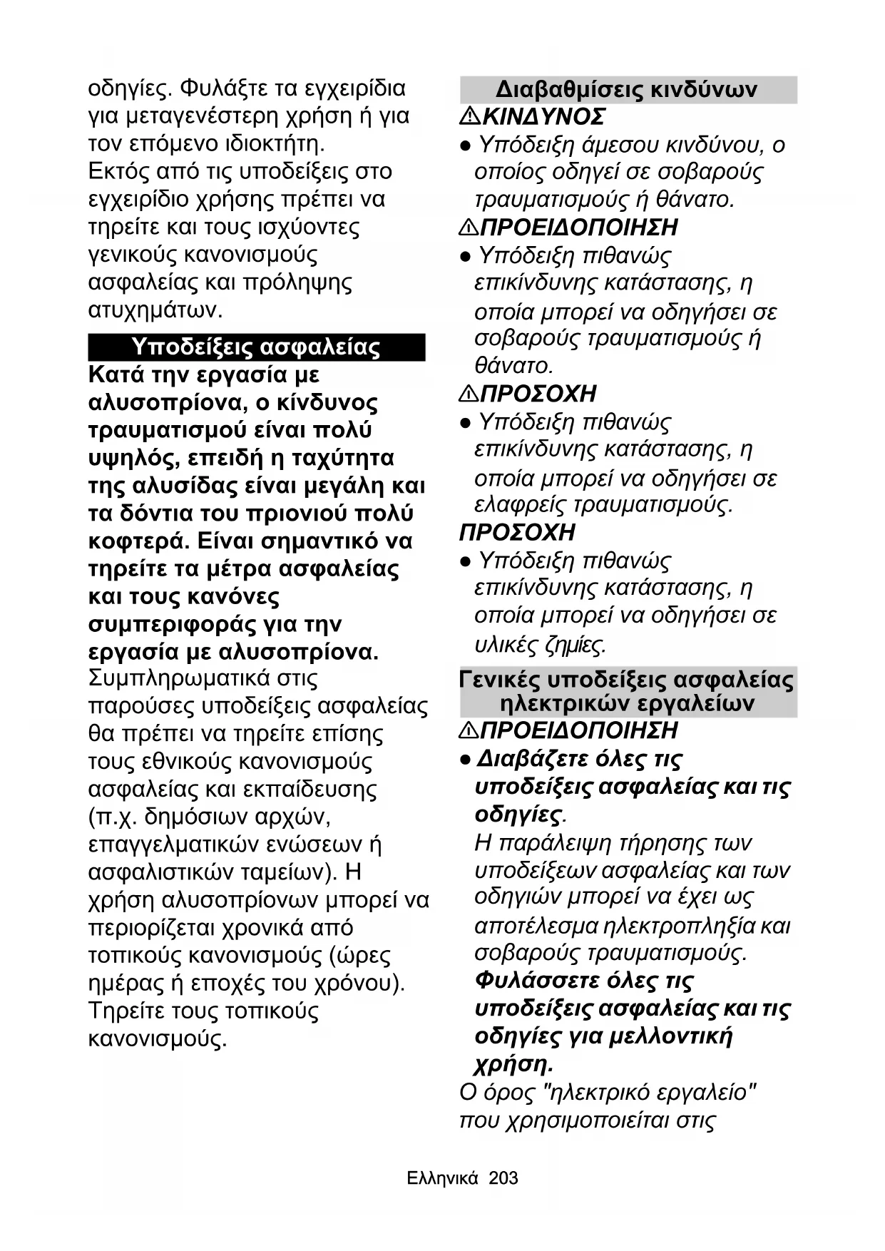 ● Υπόδειξη πιθανώς επικίνδυνης κατάστασης, η οποία μπορεί να οδηγήσει σε υλικές ζημίες. Γενικές υποδείξεις ασφαλείας ηλεκτρικών εργαλείων 몇 ΠΡΟΕΙΔΟΠΟΙΗΣΗ ● Διαβάζετε όλες τις υποδείξεις ασφαλείας και τις