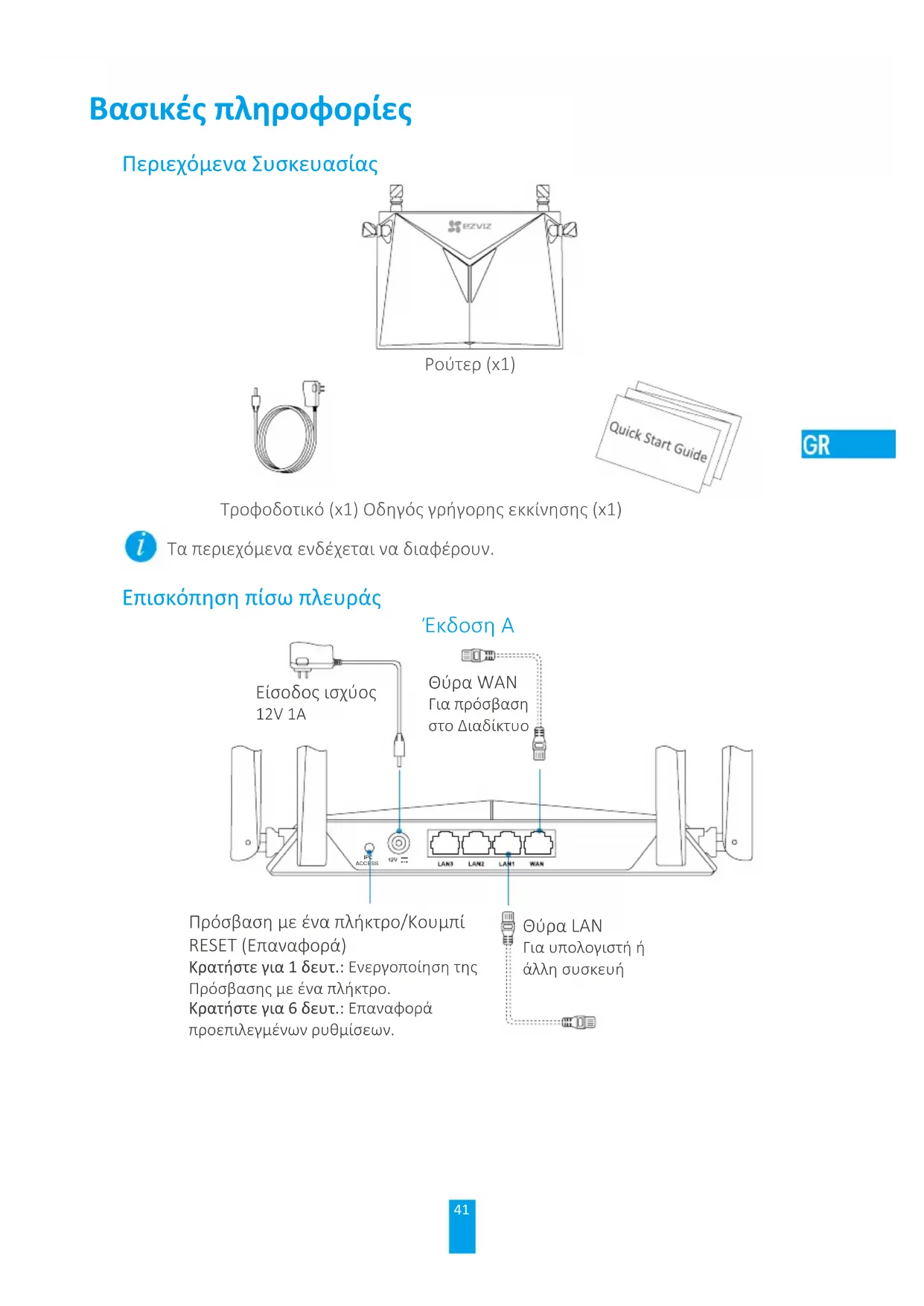 и удерживайте ее 1 сек. для подключения к сети Wi-Fi.41 Βασικές πληροφορίες Περιεχόμενα Συσκευασίας Ρούτερ (x1) Τροφοδοτικό (x1) Οδηγός γρήγορης εκκίνησης (x1) Τα περιεχόμενα ενδέχεται να διαφέρουν. Επισκόπηση πίσω πλευράς