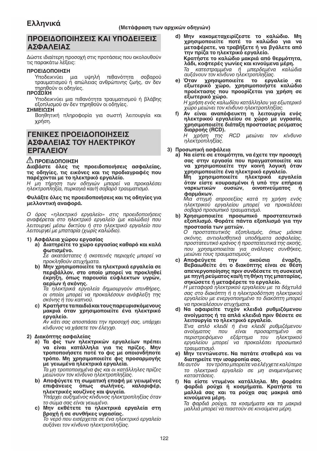 ΓΕΝΙΚΕΣ ΠΡΟΕΙΔΟΠΟΙΗΣΕΙΣ ΑΣΦΑΛΕΙΑΣ ΤΟΥ ΗΛΕΚΤΡΙΚΟΥ