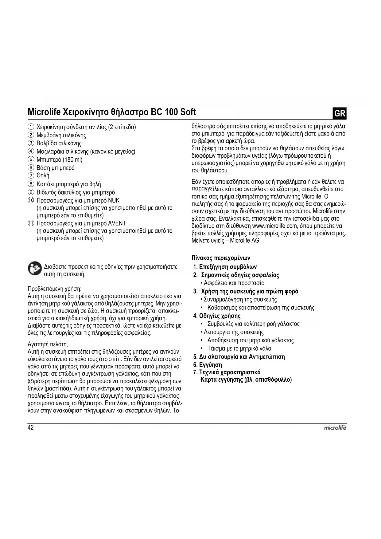 Κάρτα εγγύησης (βλ. οπισθόφυλλο) Microlife Χειροκίνητο θήλαστρο BC 100 Soft
