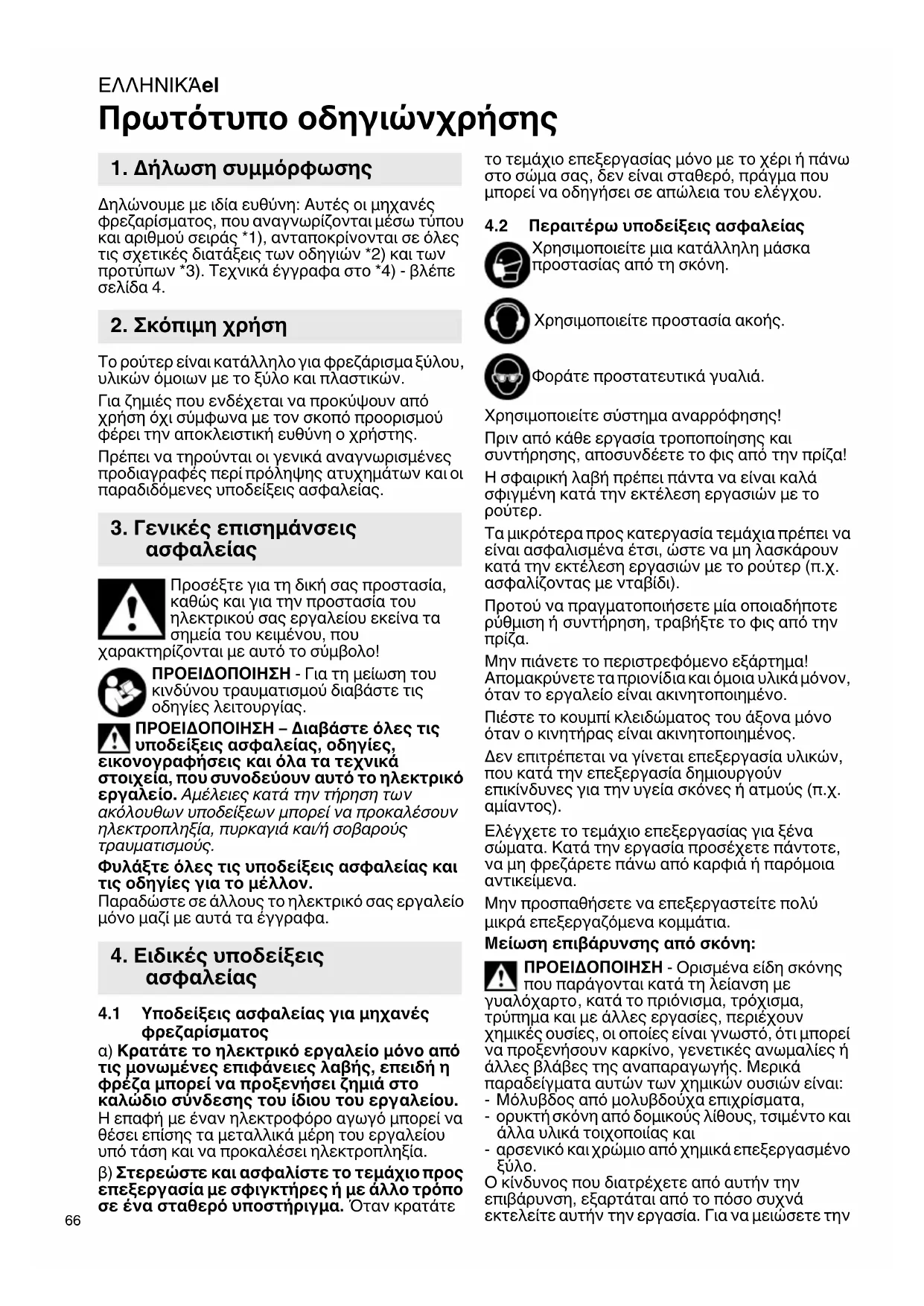 Πρωτότυπο οδηγιώνχρήσης Δηλώνουμε με ιδία ευθύνη: Αυτές οι μηχανές φρεζαρίσματος, που αναγνωρίζονται μέσω τύπου και αριθμού σειράς *1), ανταποκρίνονται σε όλες τις σχετικές διατάξεις των οδηγιών *2) και των προτύπων *3). Τεχνικά έγγραφα στο *4) - βλέπε σελίδα 4. Το ρούτερ είναι κατάλληλο για φρεζάρισμα ξύλου, υλικών όμοιων με το ξύλο και πλαστικών. Για ζημιές που ενδέχεται να προκύψουν