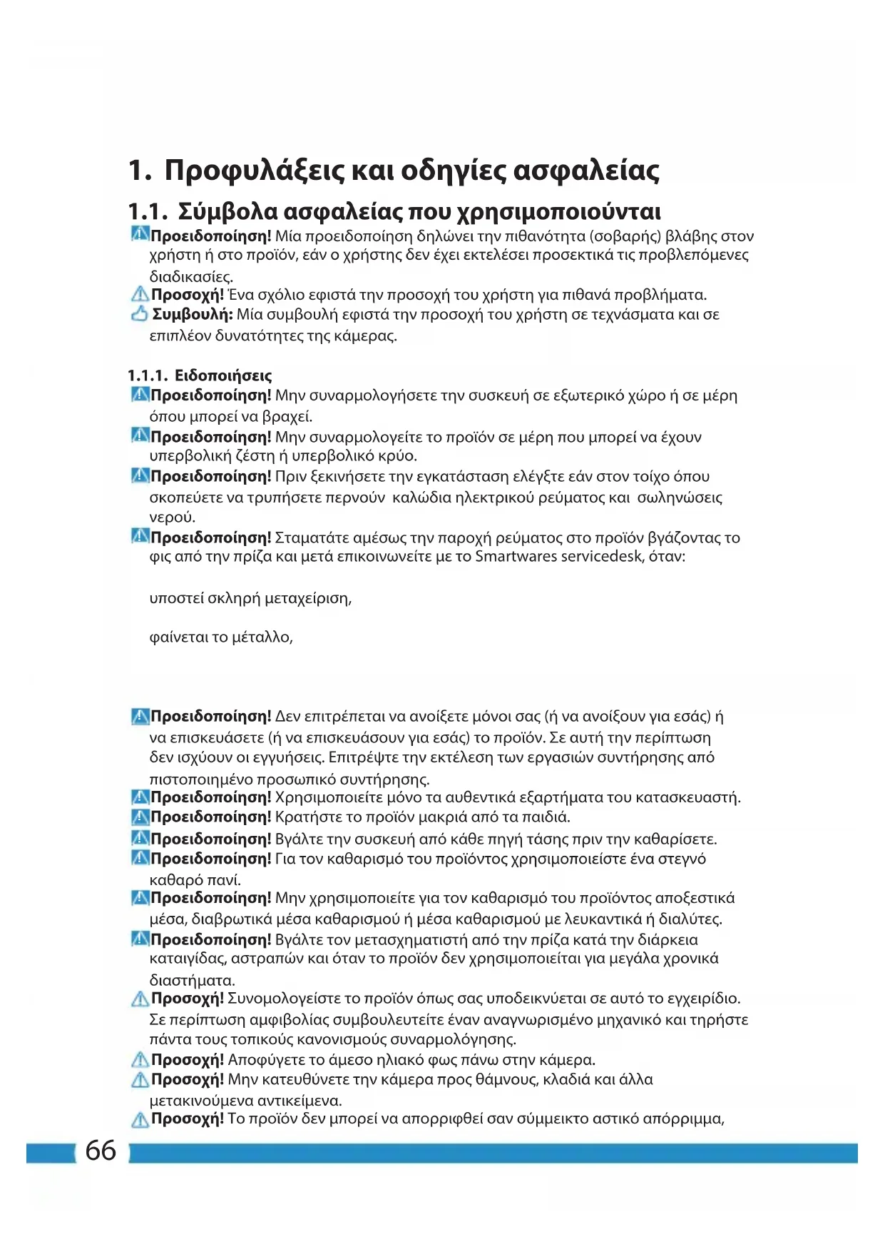 Bu cihaz için 3 yıllık sınırlı bir garanti vardır. Garanti şartları için lütfen www.smartwares.eu adresini ziyaret edin. Εγχειρίδιο C706IP Σας ευχαριστούμε για την αγορά σας της δικτυακής κάμερας C706IP. Για να μπορείτε να χρησιμοποιήστε την κάμερά σας όσο πιο γρήγορα και όσο το δυνατόν ευκολότερα, σας συνιστούμε να διαβάσετε αυτό το εγχειρίδιο προσεκτικά πριν την χρήση της κάμερας. Μπορείτε να βρείτε τις εικόνες αυτού του εγχειρίδιου πριν από αυτό το κεφάλαιο. www.smartwares.eu66