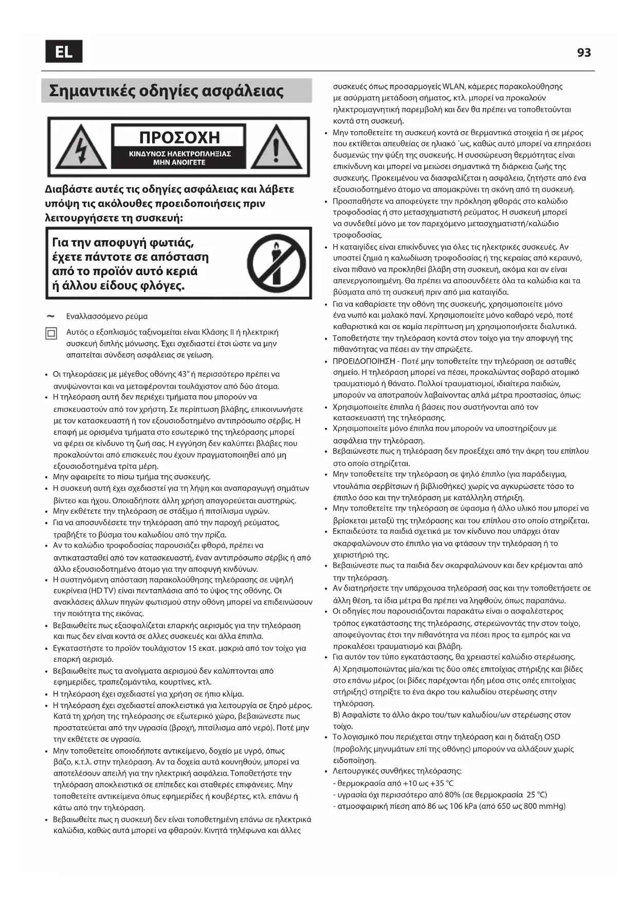 - Η τηλεόραση έχει σχεδιαστεί για χρήση σε ήπιο κλίμα.