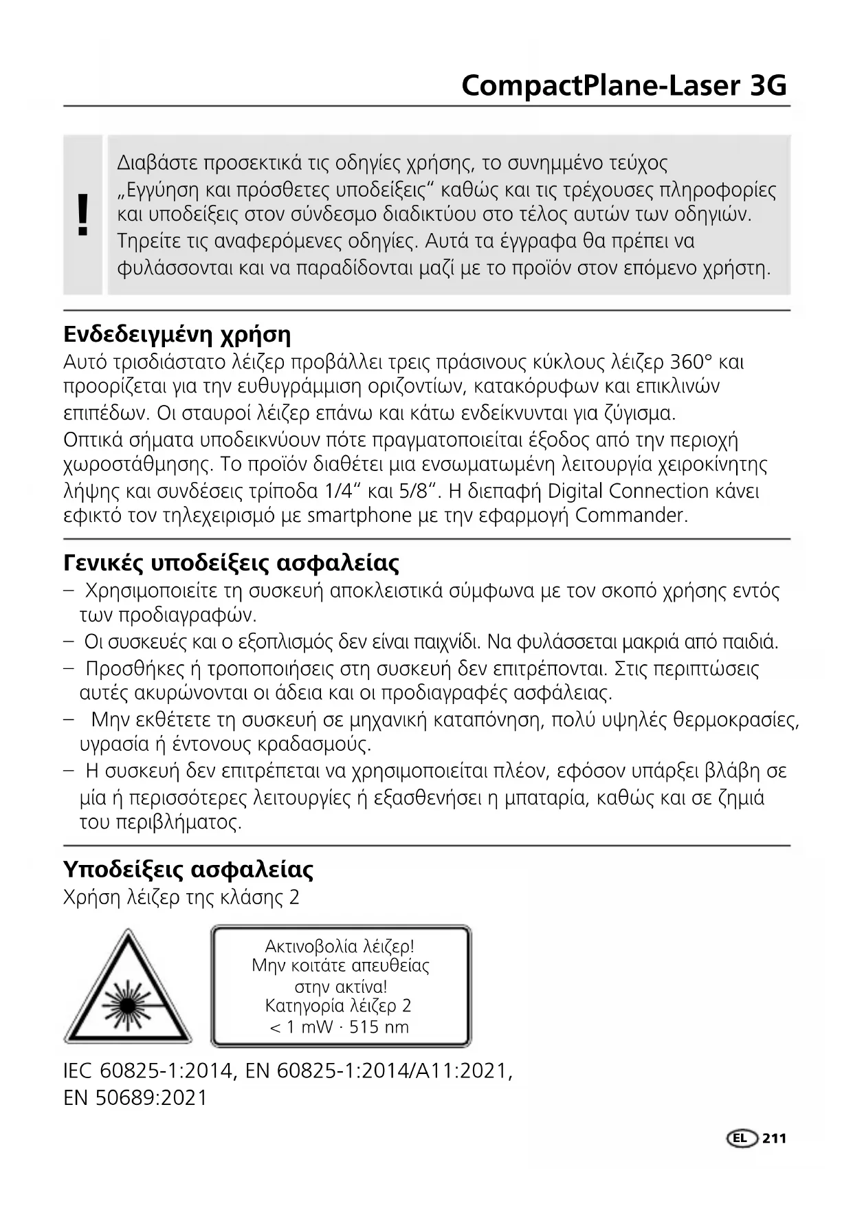 ΕΓΧΕΙΡΊΔΙΟ ΧΡΉΣΗΣ CompactPlaneLaser 3G Laserliner