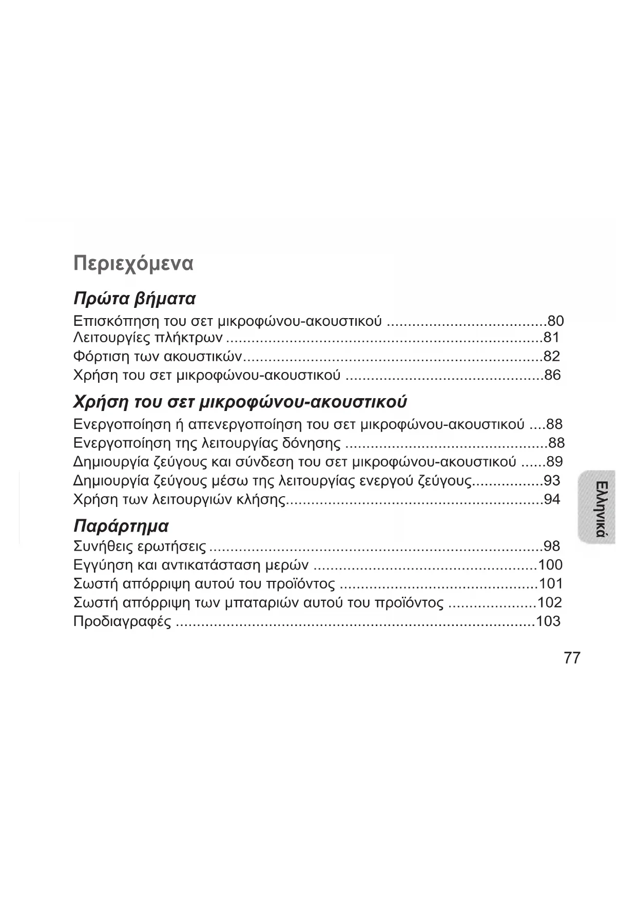 - Δημιουργία ζεύγους και σύνδεση του σετ μικροφώνου‑ακουστικού p. 89