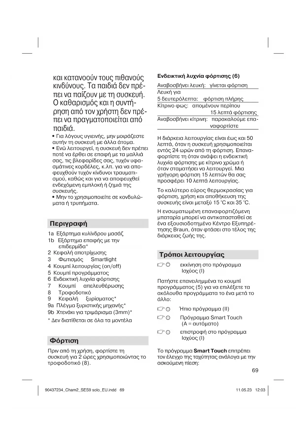 90437234_Cham2_SES9 solo_EU.indd 7190437234_Cham2_SES9 solo_EU.indd 71 11.05.23 12:0311.05.23 12:0372 ΑΠΟΡΡΙΨΗ ΣΥΣΚΕΥΗΣ Αυτό το προϊόν περιέχει μπαταρίες και/ή ανακυκλώσιμα ηλεκτρικά απόβλητα. Προκειμένου να προ- στατευθεί το περιβάλλον, μην πετάτε το προϊόν στα οικιακά απορρίμ- ματα στο τέλος της διάρκειας της ζωής του, αλλά η αποκομιδή μπορεί να γίνει στα ειδικά σημεία αποκομιδής ή ανακύ- κλωσης, που υπάρχουν στη χώρα σας. Υπόκειται σε τροποποίηση χωρίς προει-
