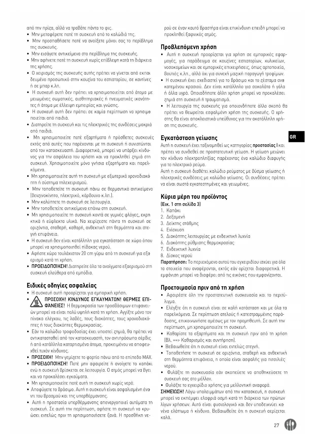 - Αυτή η συσκευή προορίζεται για χρήση σε εμπορικές εφαρ- μογές, για παράδειγμα σε κουζίνες εστιατορίων, κυλικείων, νοσοκομείων και σε εμπορικές επιχειρήσεις, όπως αρτοποιεία, βουτιές κ.λπ., αλλά όχι για συνεχή μαζική παραγωγή τροφίμων.