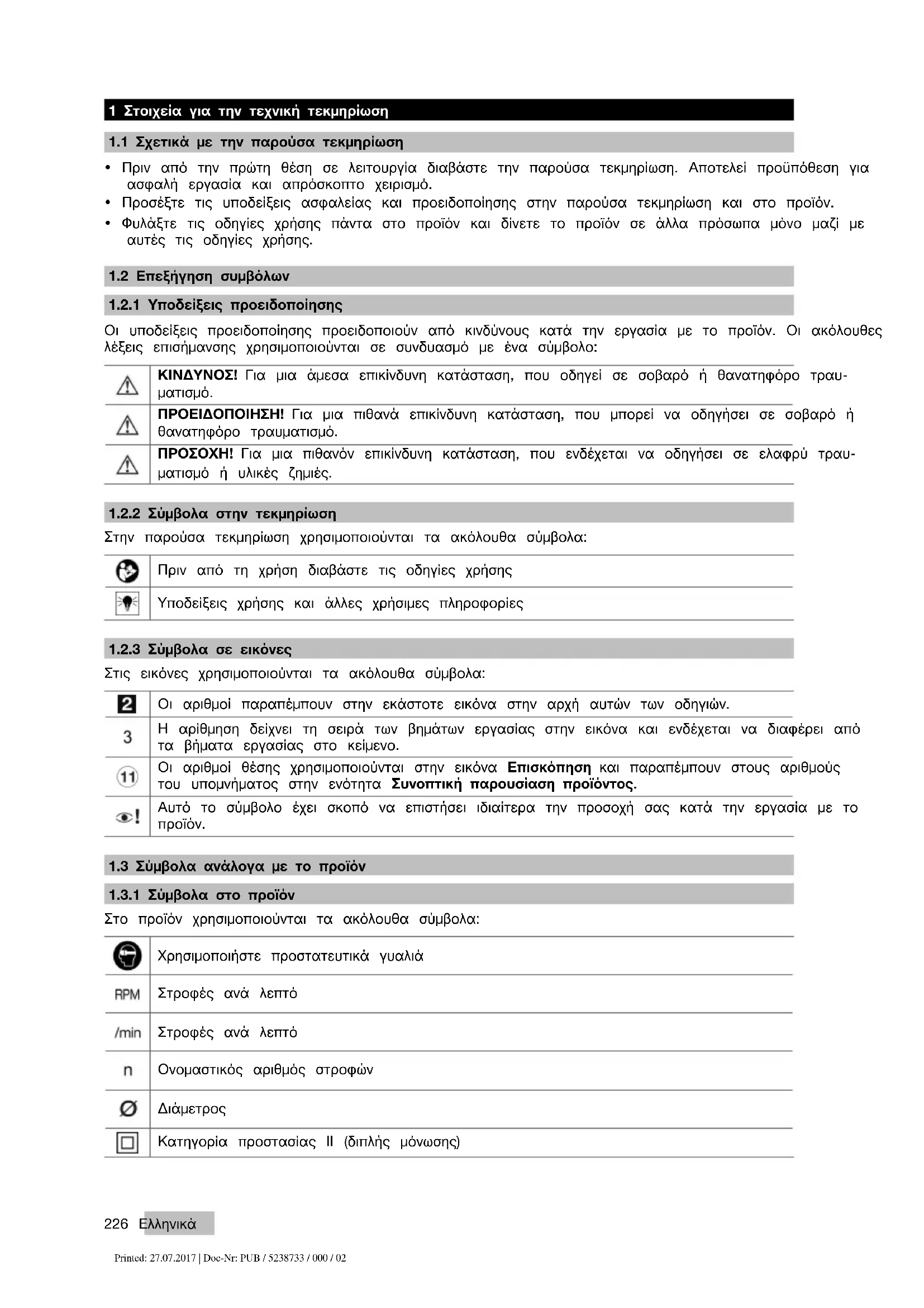 Κατηγορία προστασίας ΙΙ (διπλής μόνωσης) Printed: 27.07.2017 | Doc-Nr: PUB / 5238733 / 000 / 02Ελληνικά 227
