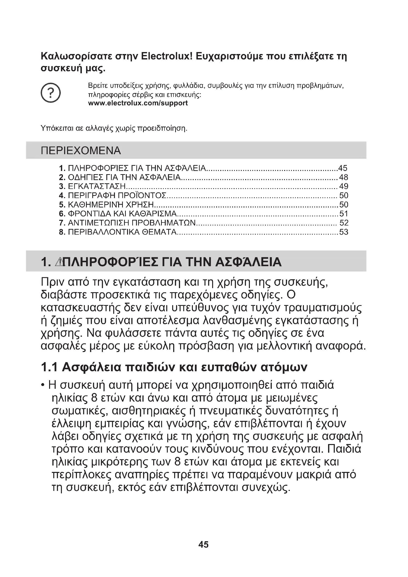 - Η συσκευή αυτή μπορεί να χρησιμοποιηθεί από παιδιά ηλικίας 8 ετών και άνω και από άτομα με μειωμένες σωματικές, αισθητηριακές ή πνευματικές δυνατότητες ή έλλειψη εμπειρίας και γνώσης, εάν επιβλέπονται ή έχουν λάβει οδηγίες σχετικά με τη χρήση της συσκευής με ασφαλή τρόπο και κατανοούν τους κινδύνους που ενέχονται. Παιδιά ηλικίας μικρότερης των 8 ετών και άτομα με εκτενείς και περίπλοκες αναπηρίες πρέπει να παραμένουν μακριά από τη συσκευή, εκτός εάν επιβλέπονται συνεχώς. 45• Τα παιδιά πρέπει να εποπτεύονται ώστε να διασφαλίζεται ότι δεν παίζουν με τη συσκευή.