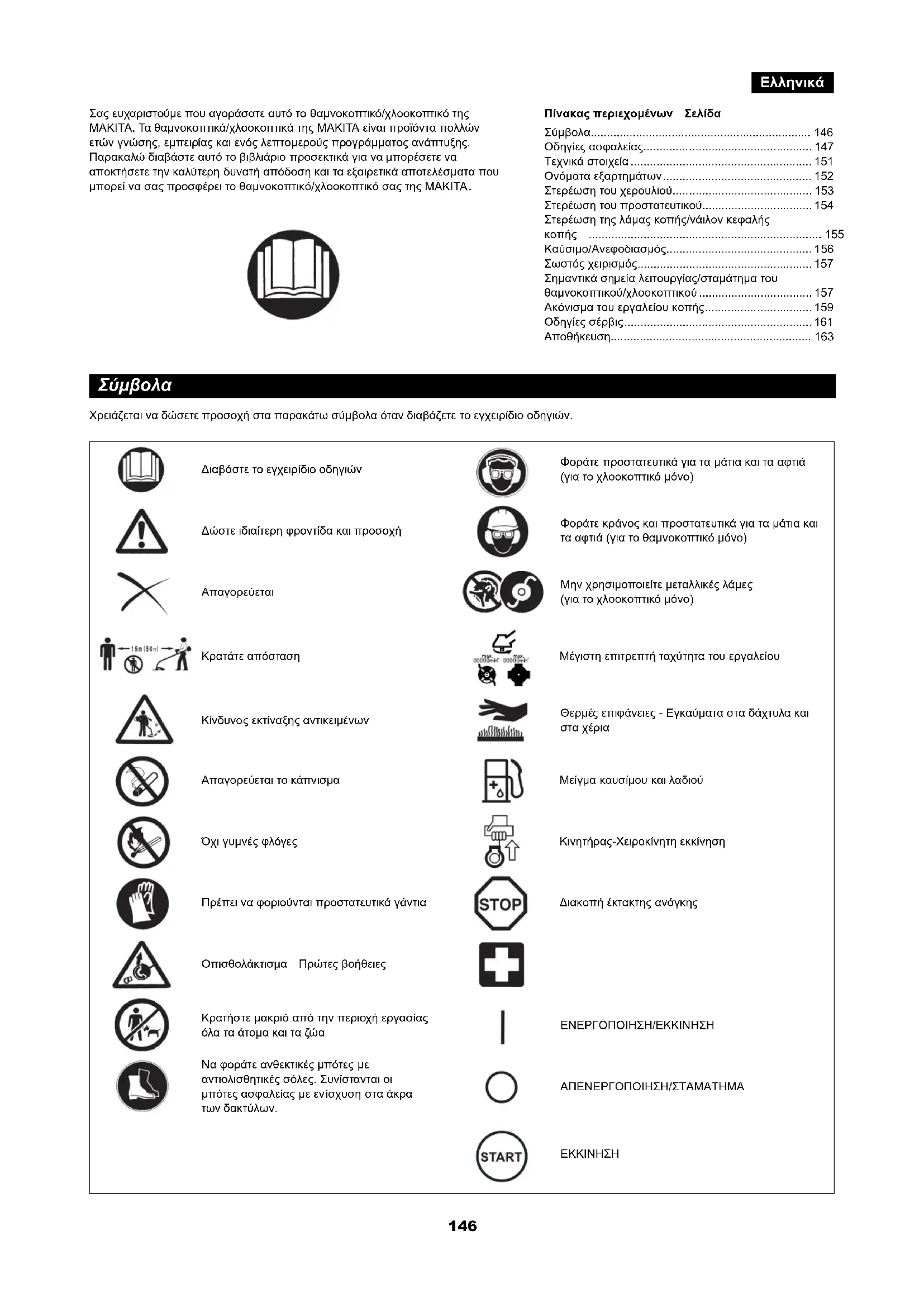 - Πίνακας περιεχομένων Σελίδα Σύμβολα p. 146